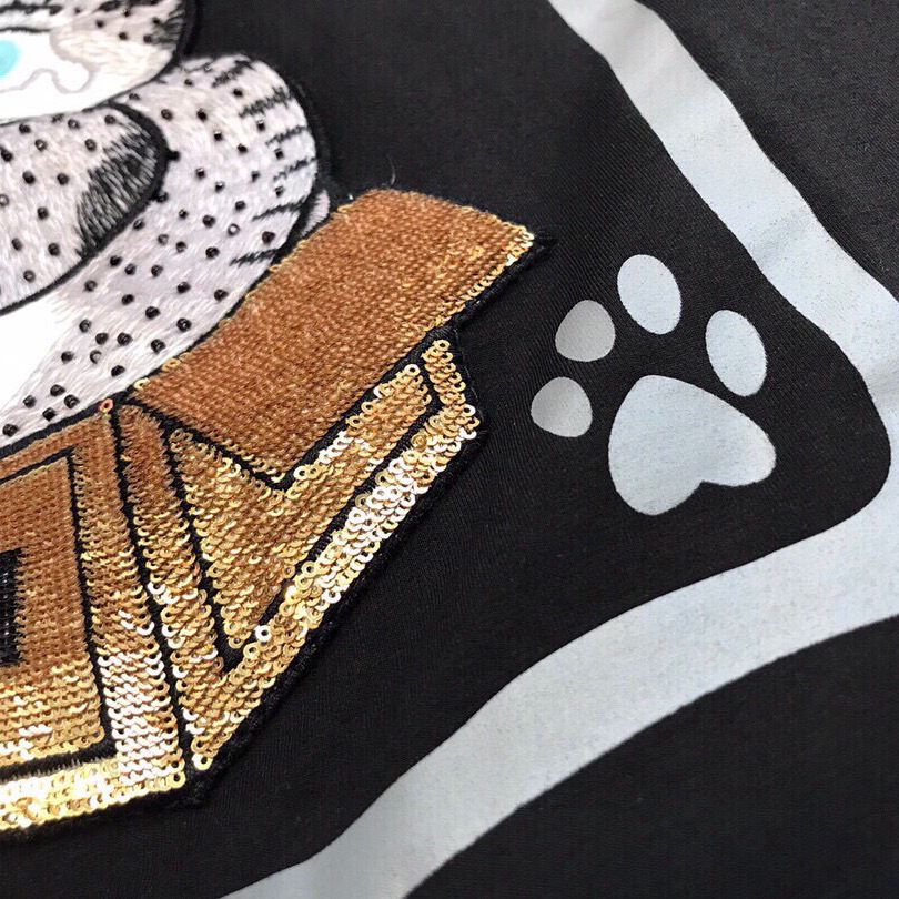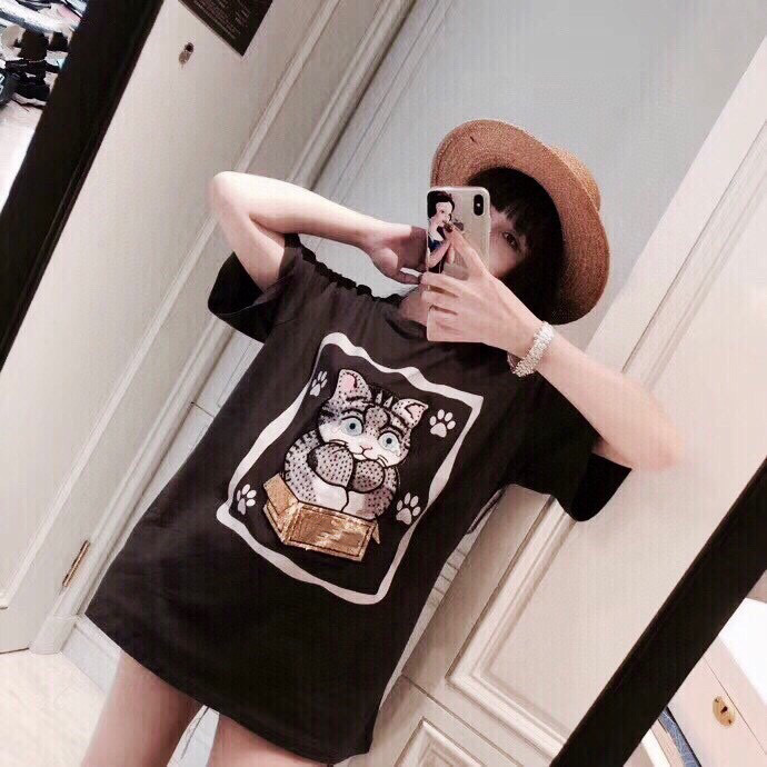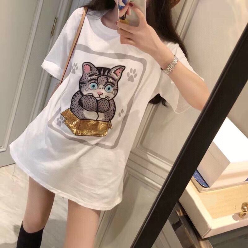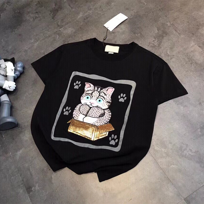 스팽글 자수 귀여운 고양이 긁힘 고양이 티셔츠 연령 감소 여름 유행 브랜드 반팔 캐주얼 중공업 크로스보더 배송스토어 가기