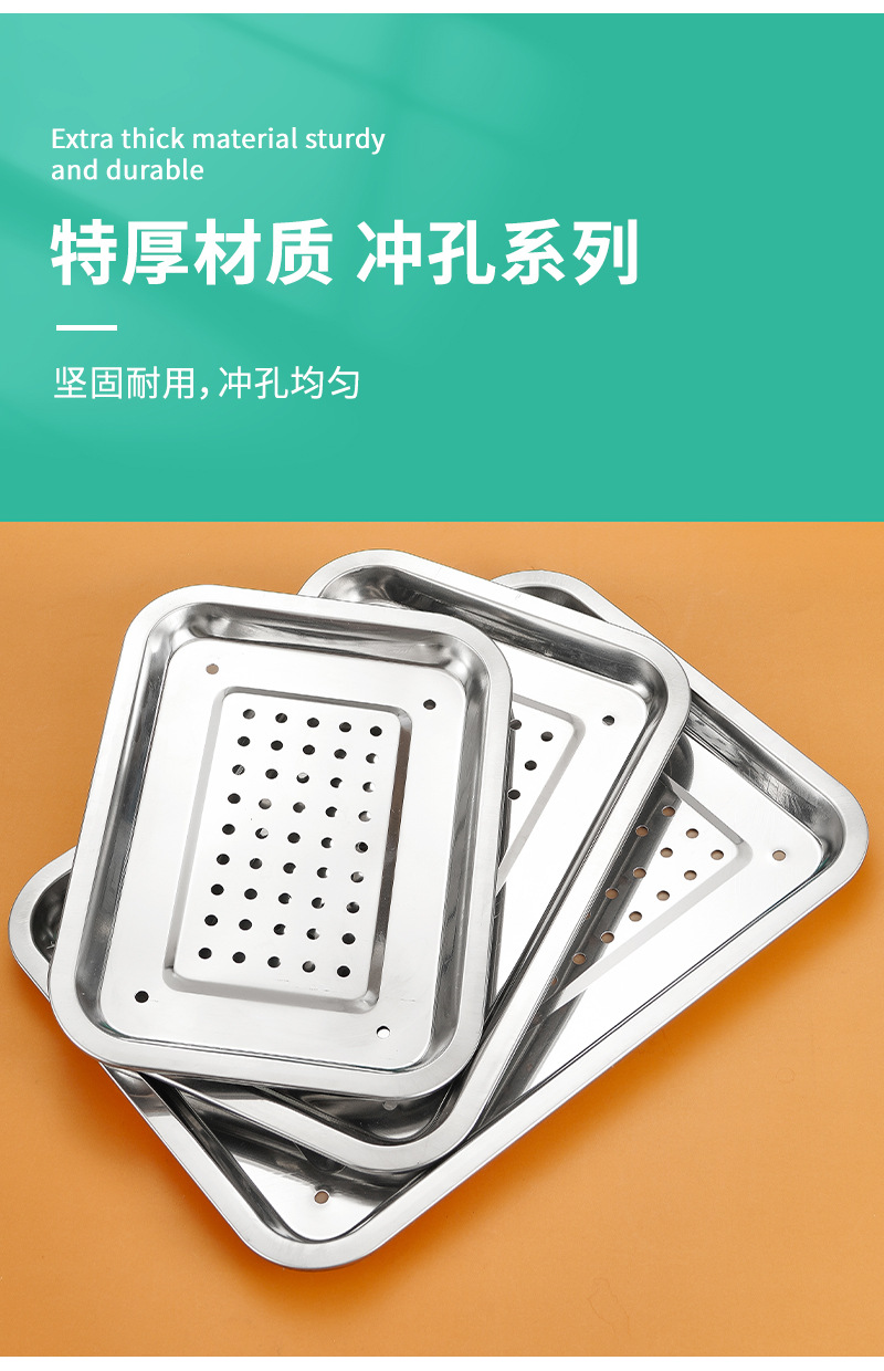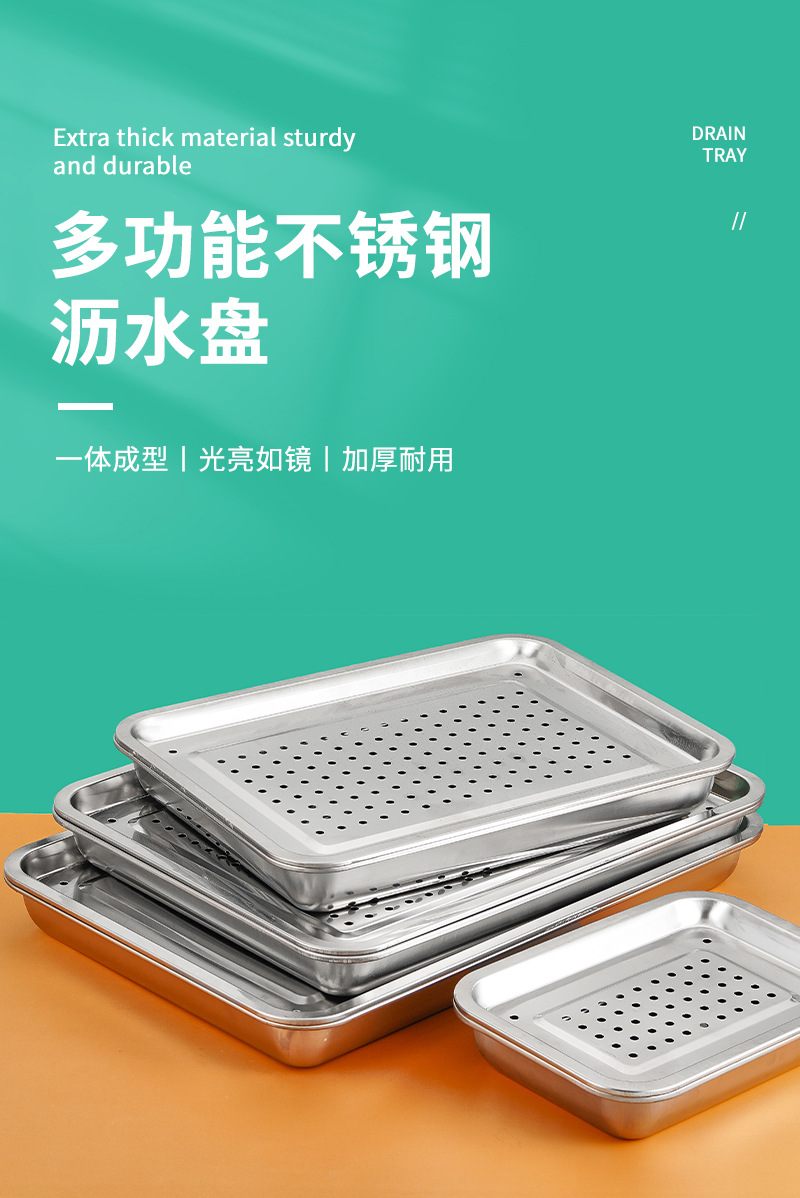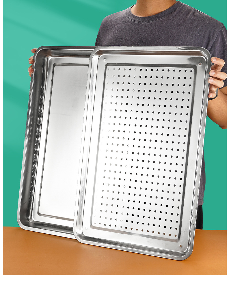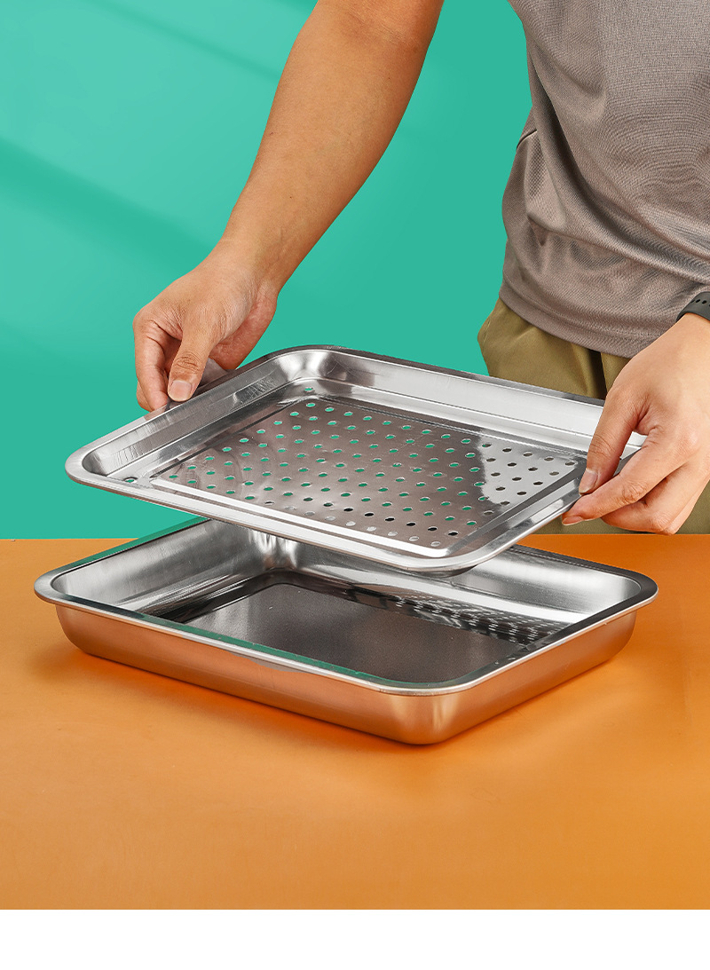 스테인레스 스틸 배수 트레이 직사각형 차 트레이 가정용 만두 배수 트레이 깊은 찜 트레이 필터 물 배수 오일 배수 트레이