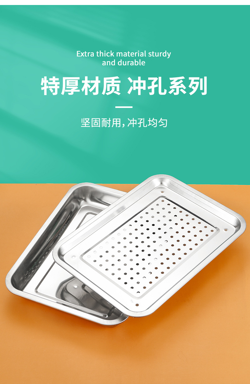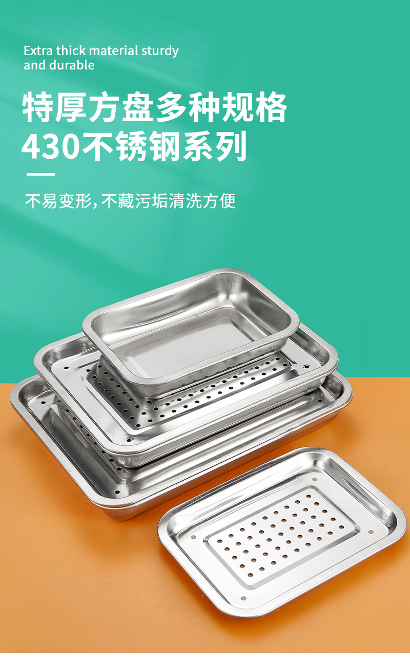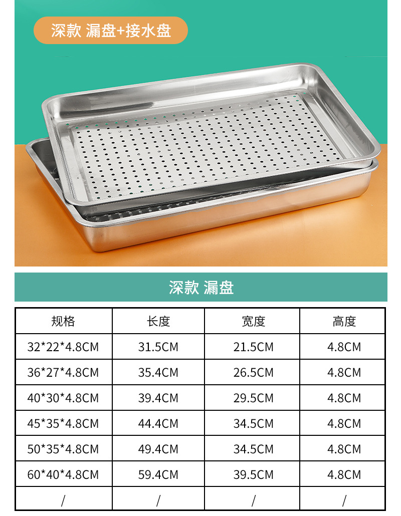 스테인레스 스틸 배수 트레이 직사각형 차 트레이 가정용 만두 배수 트레이 깊은 찜 트레이 필터 물 배수 오일 배수 트레이