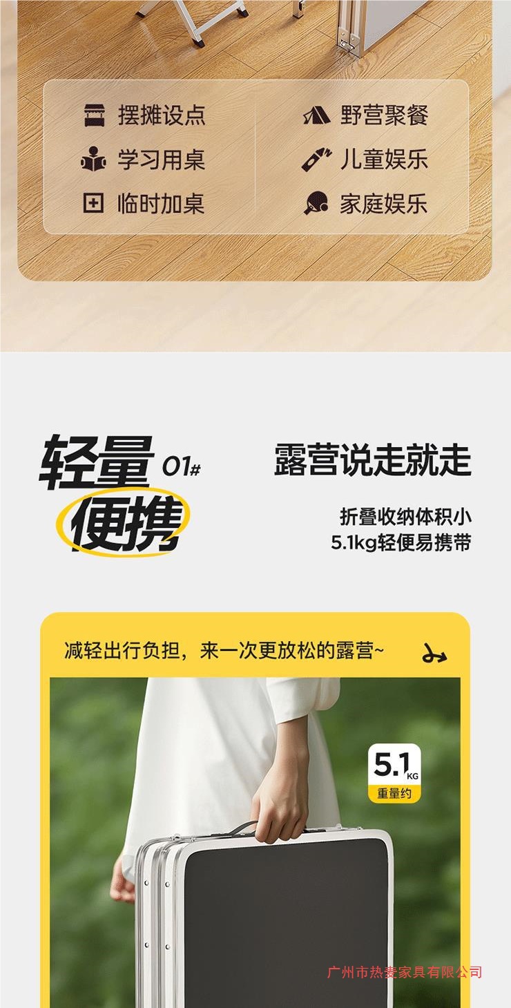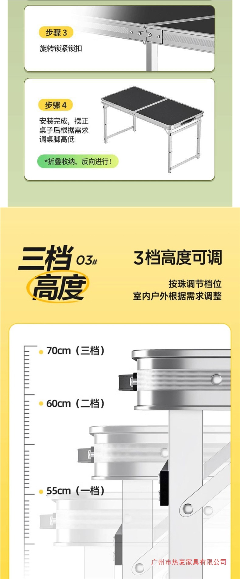 • [업그레이드 된 알루미늄 합금 사각 튜브] 120*60cm 검정색 + 알루미늄 의자 2개