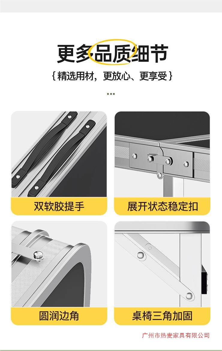 • [업그레이드 된 알루미늄 합금 사각 튜브] 120*60cm 검정색 + 알루미늄 의자 4개