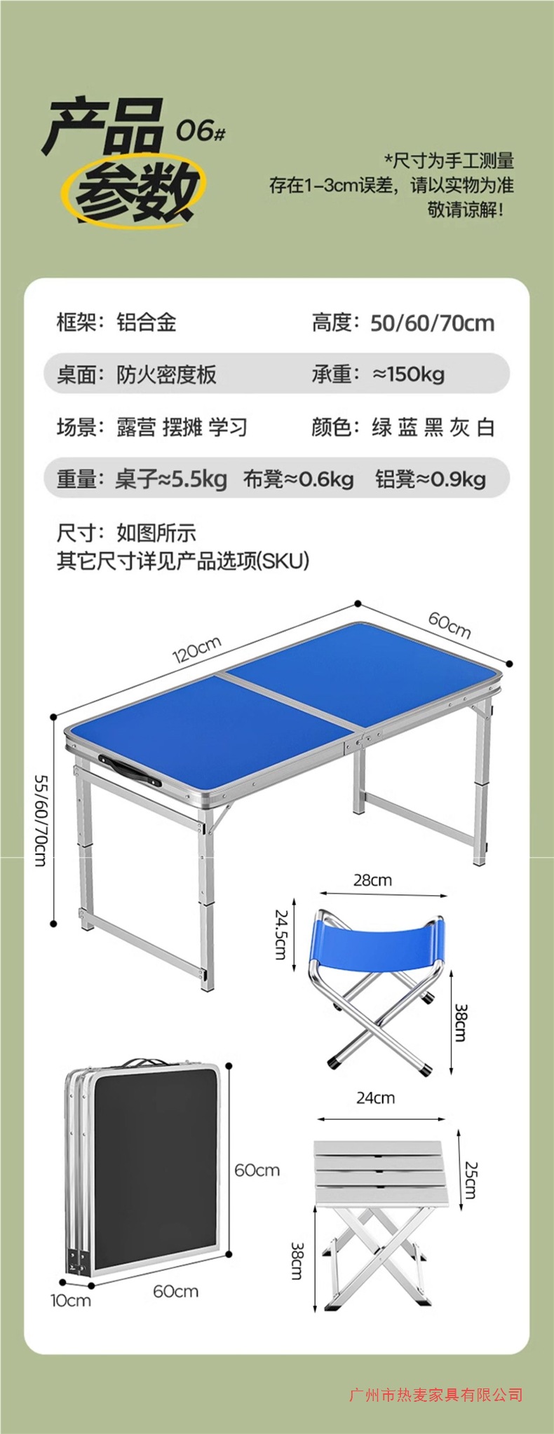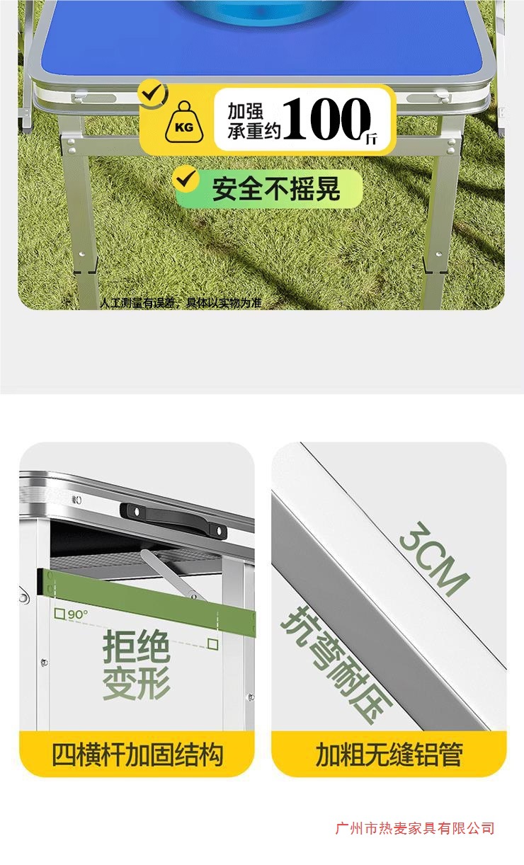 • [업그레이드 된 알루미늄 합금 사각 튜브] 120*60cm 파란색 + 알루미늄 의자 2개