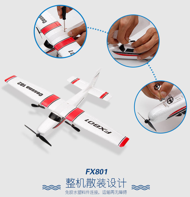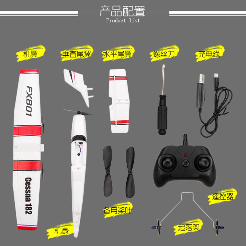 FX801遥控滑翔机塞斯纳182固定翼泡沫飞机拼装儿童航模玩具户外