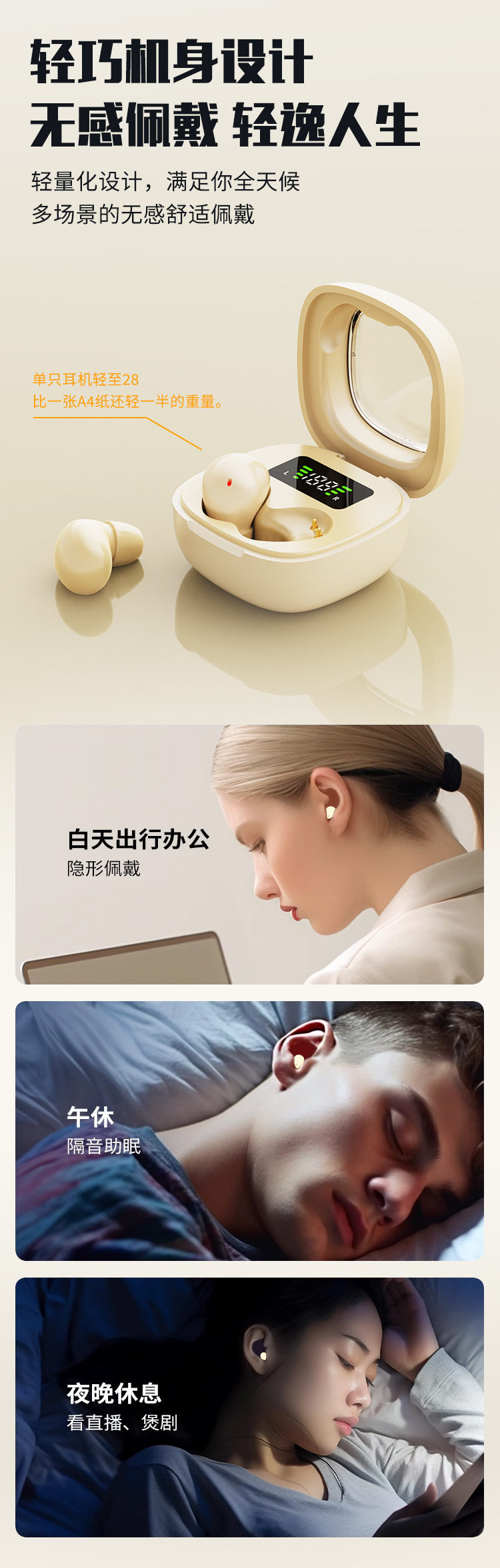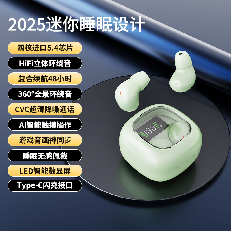Y19 새로운 수면 미니 무선 블루투스 헤드셋은 착용하기 쉽고 매우 긴 ENC 항공 소음 감소 범용 디지털 디스플레이입니다.스토어 가기