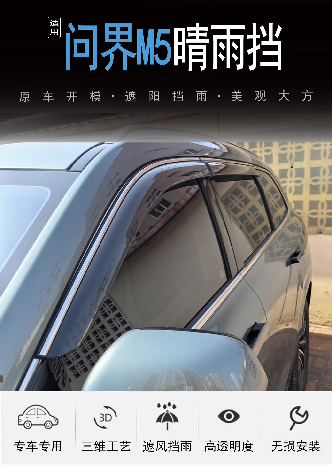 2022-2024년형 Qianjie M5 차량용 창문 개조 및 비 차단 아크릴 자동차 비 차단 장치에 적합스토어 가기