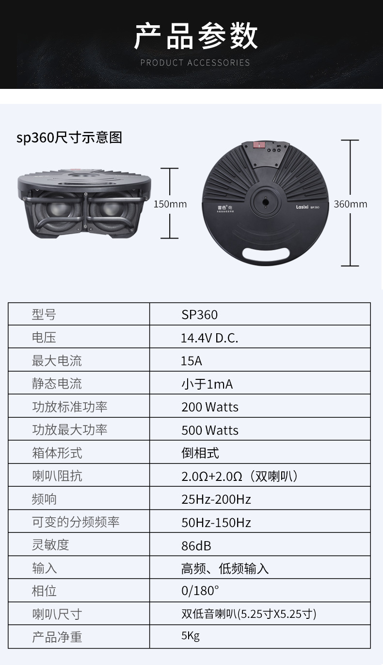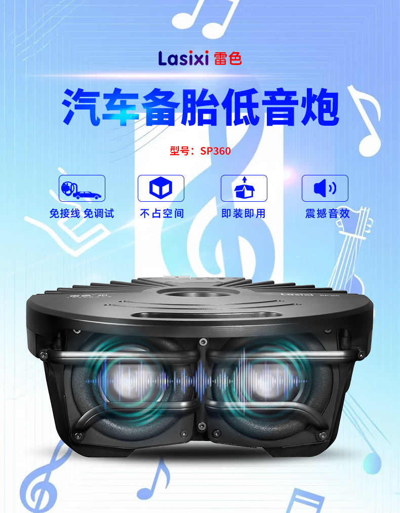 Thunder 자동차 SP-360 스페어 타이어 서브우퍼 액티브 앰프 포함 공간을 차지하지 않는 순수한 저음 수정 서브우퍼스토어 가기