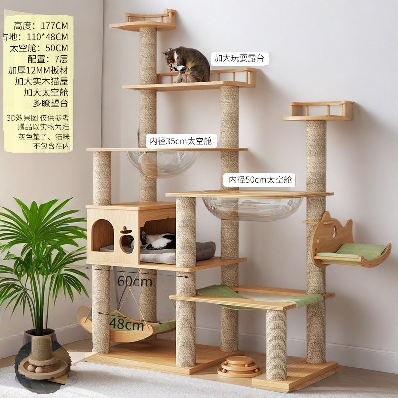 대형 원목 고양이 클라이밍 프레임, 올인원, 사계절 사용 가능, 대형 고양이 스크래치 보드, 우주 캡슐, 뚱뚱한 고양이 장난감 스크래치 컬럼, 내마모성