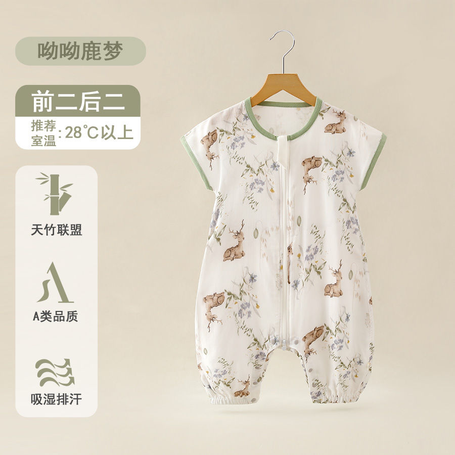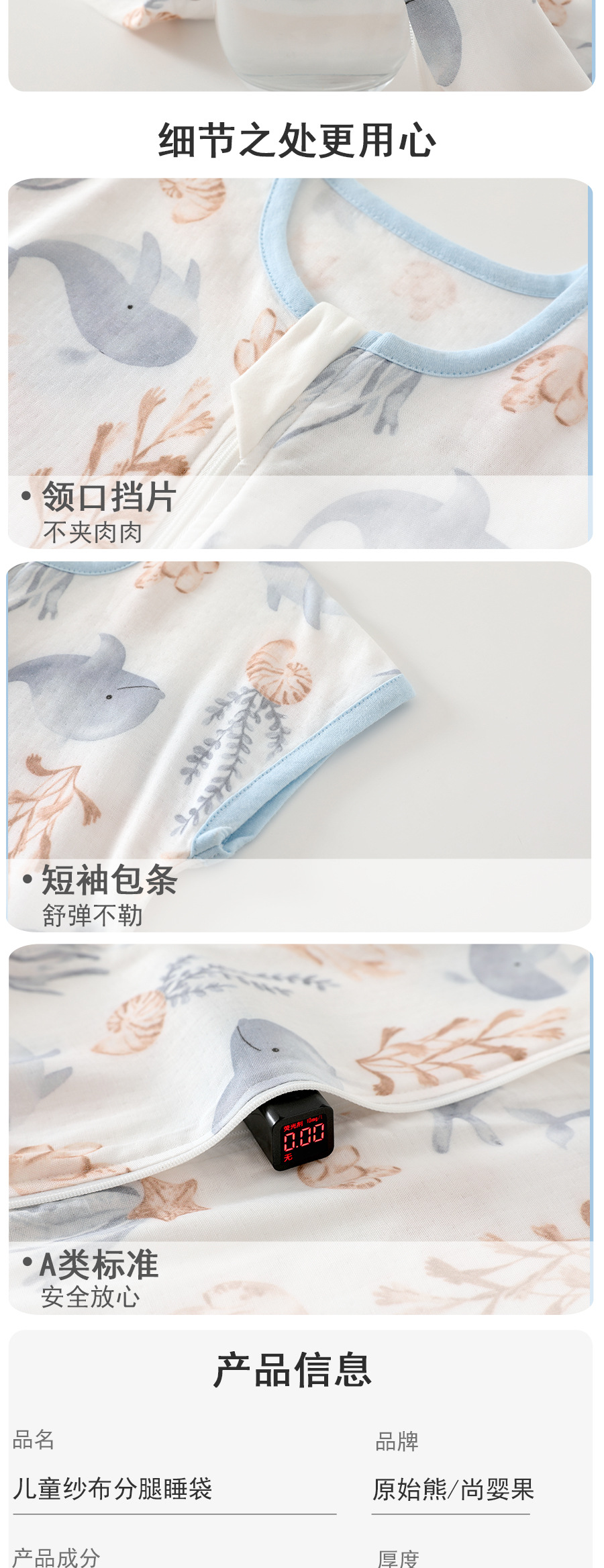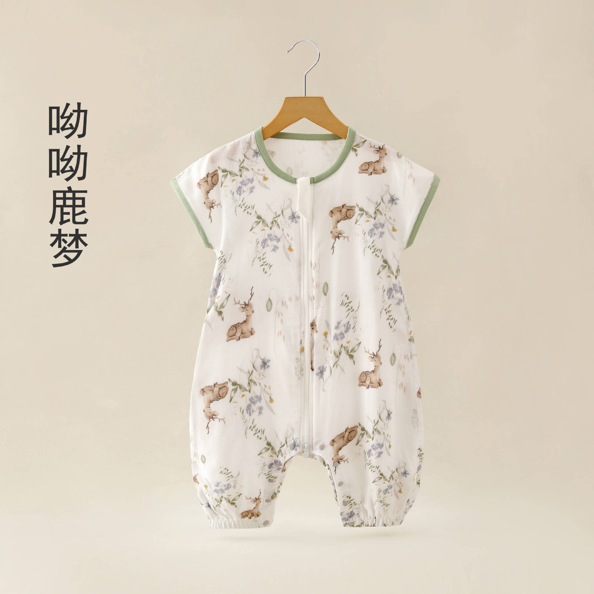 대나무면 거즈 여름 얇은 아기 다리가 나누어진 침낭 아기 점프 슈트 에어컨 룸 안티 킥 반팔 침낭