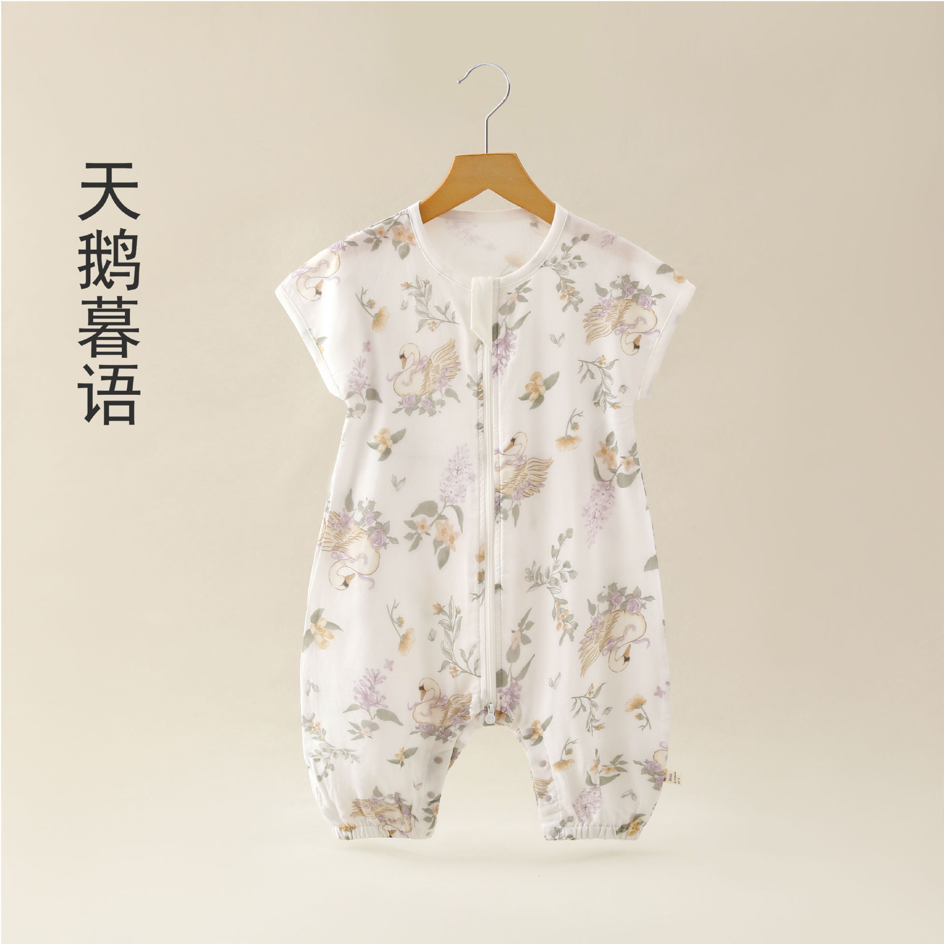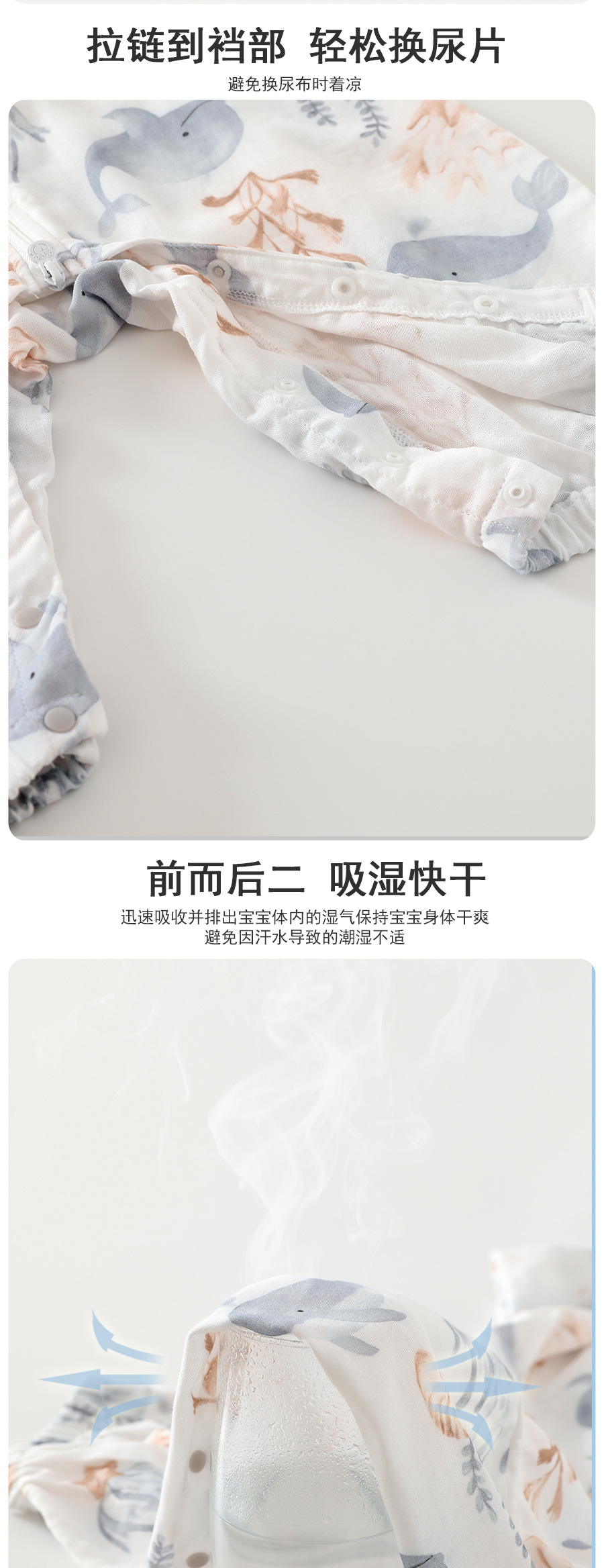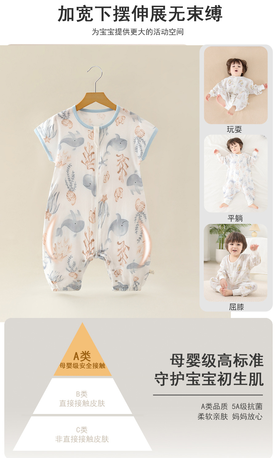 대나무면 거즈 여름 얇은 아기 다리가 나누어진 침낭 아기 점프 슈트 에어컨 룸 안티 킥 반팔 침낭