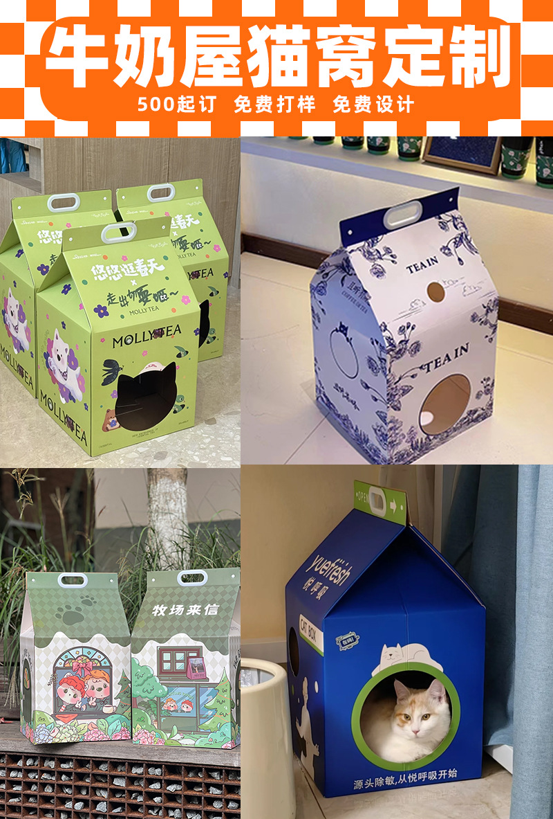 내마모성 및 비탈착성 수직 골판지 고양이 빌라 골판지 고양이 스크래치 보드 맞춤형 우유 상자 고양이 둥지 맞춤형 종이 상자스토어 가기