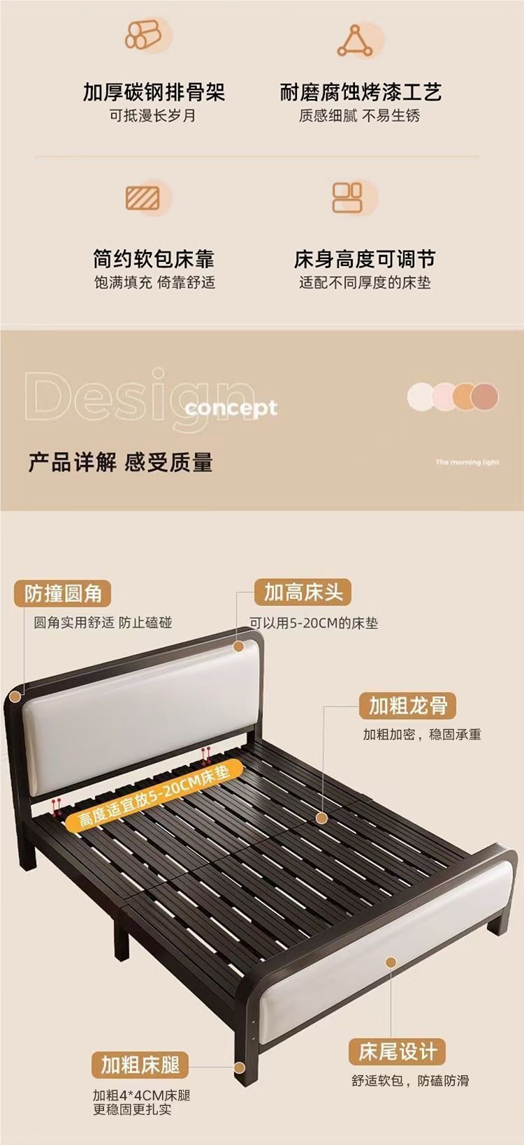 단철 침대 소프트 패키지 침대 유럽 스타일 현대 단순 경제적 인 1.5m 더블 1.9m m 어린이 철 침대 강화