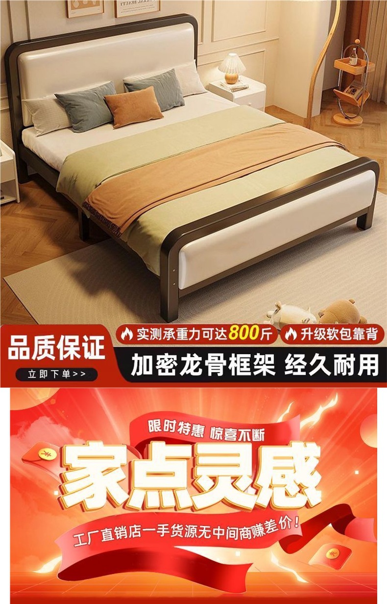 단철 침대 소프트 패키지 침대 유럽 스타일 현대 단순 경제적 인 1.5m 더블 1.9m m 어린이 철 침대 강화스토어 가기