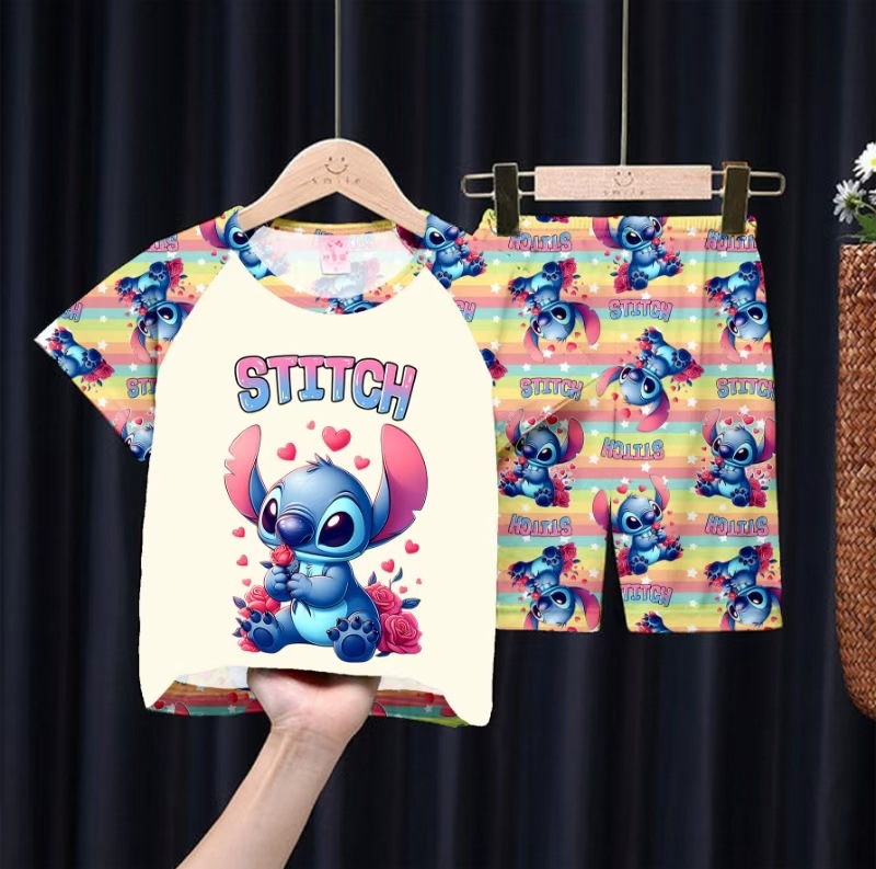 도매 어린이 잠옷 여름 소년 반팔 반바지 정장 큰 어린이 만화 귀여운 아기 소녀 가정 의류스토어 가기