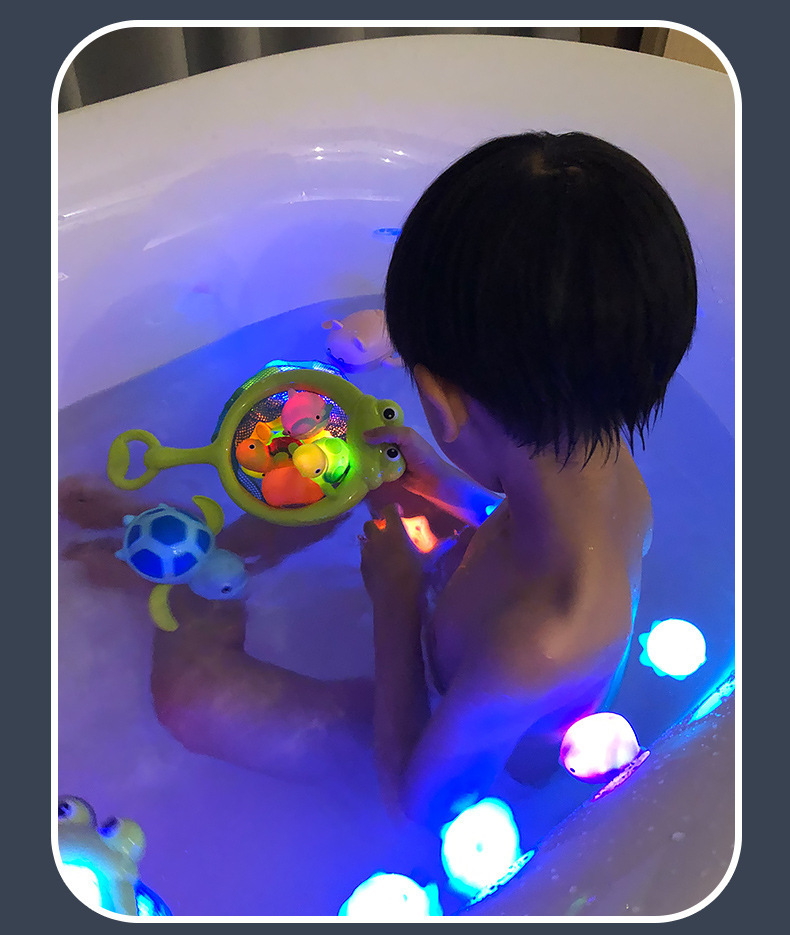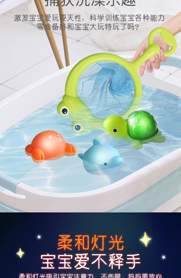 국경 간 낚시 장난감, 욕실 물놀이, 목욕 센서, 빛나는 동물, 물에 뜨는 조명, 어린이 및 아기용 물고기 낚시 그물