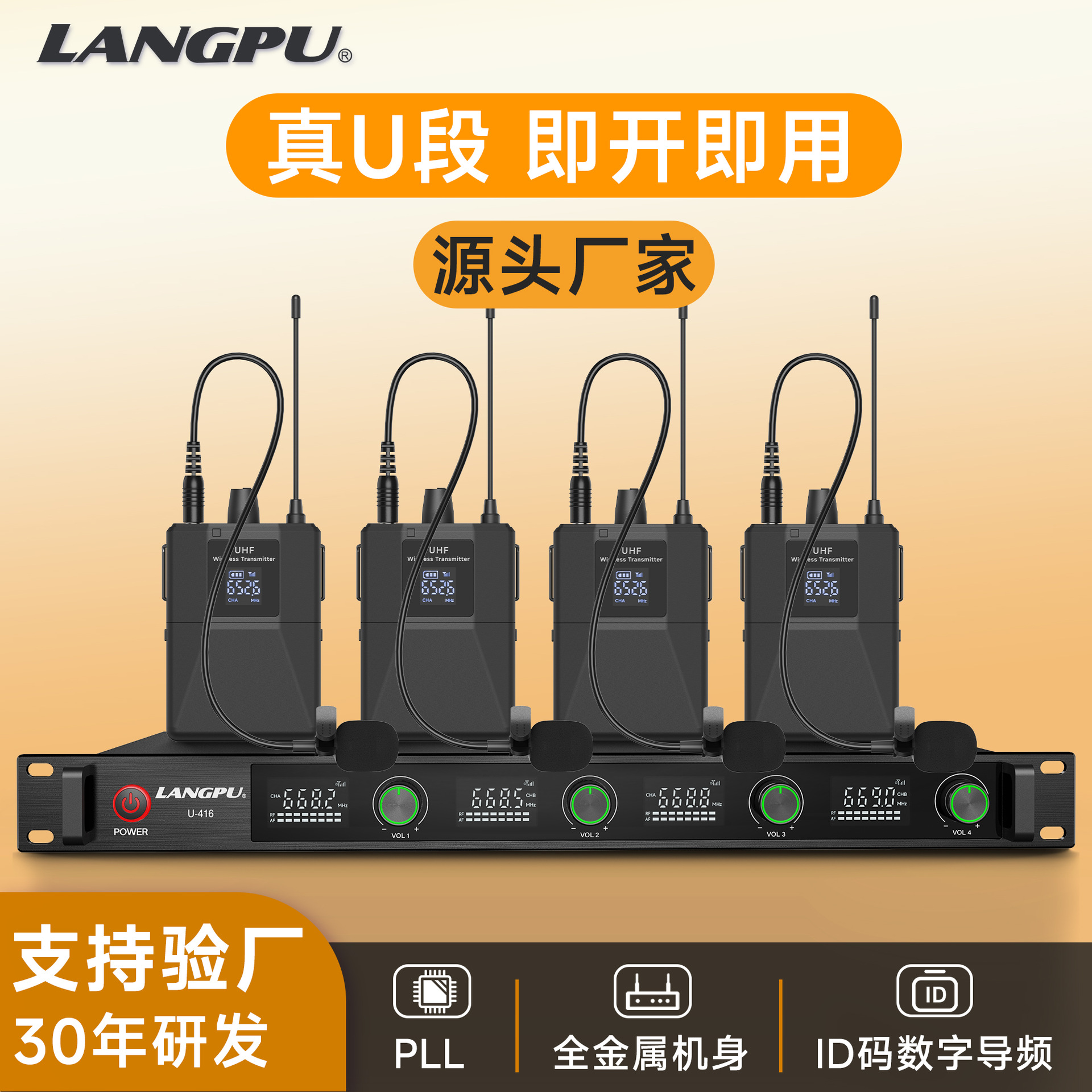 무선 라펠 마이크 1대4 U밴드 교육용 웨이스트팩 라펠 마이크 녹음용 설명 마이크 해외 도매
