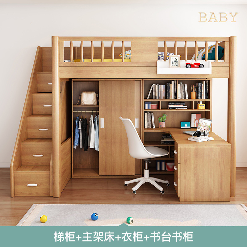 • 사다리 + 메인프레임 침대 + 옷장 + 책상 및 책장 + 무료 매트리스