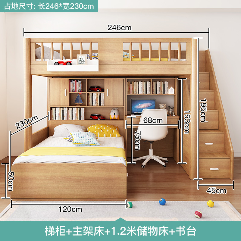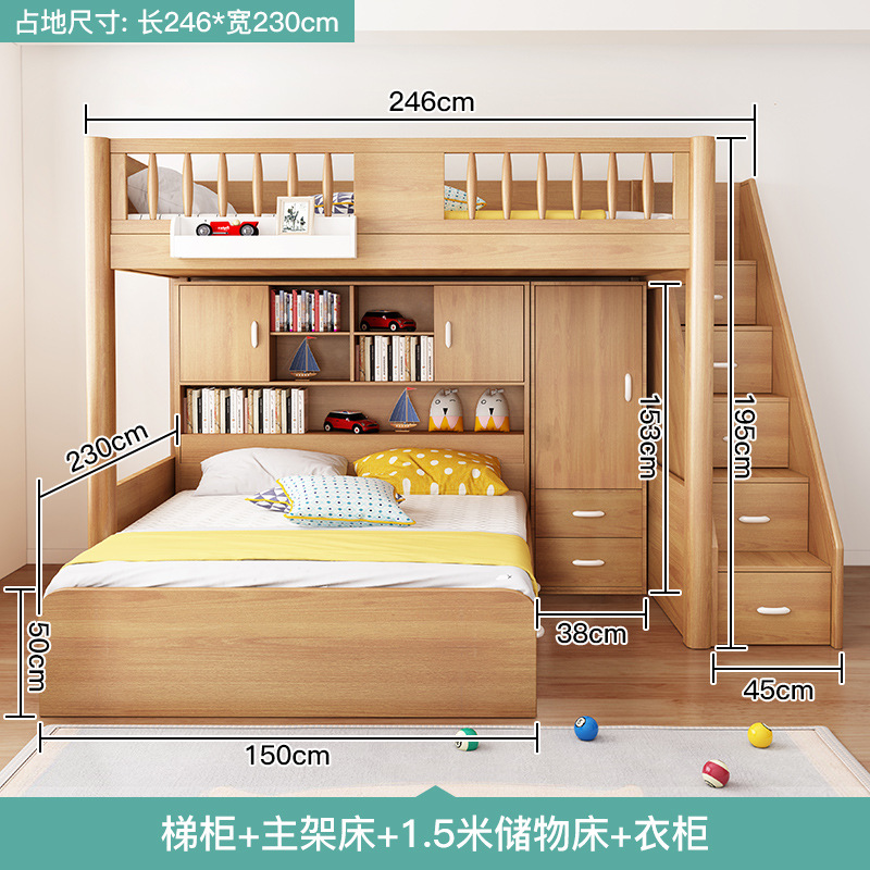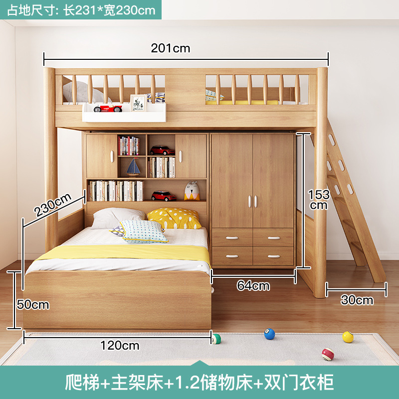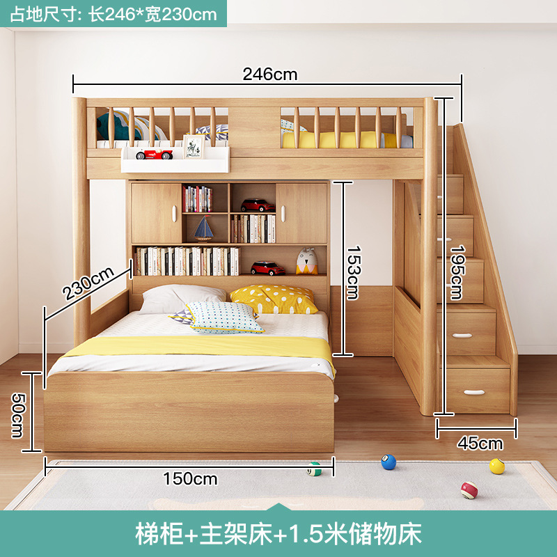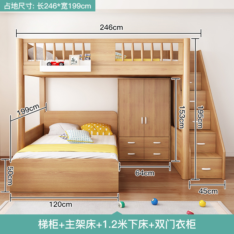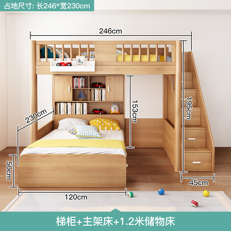 • 사다리 + 메인 프레임 침대 + 수납 침대 1.2m 개 + 양문형 옷장 + 무료 매트리스 2개