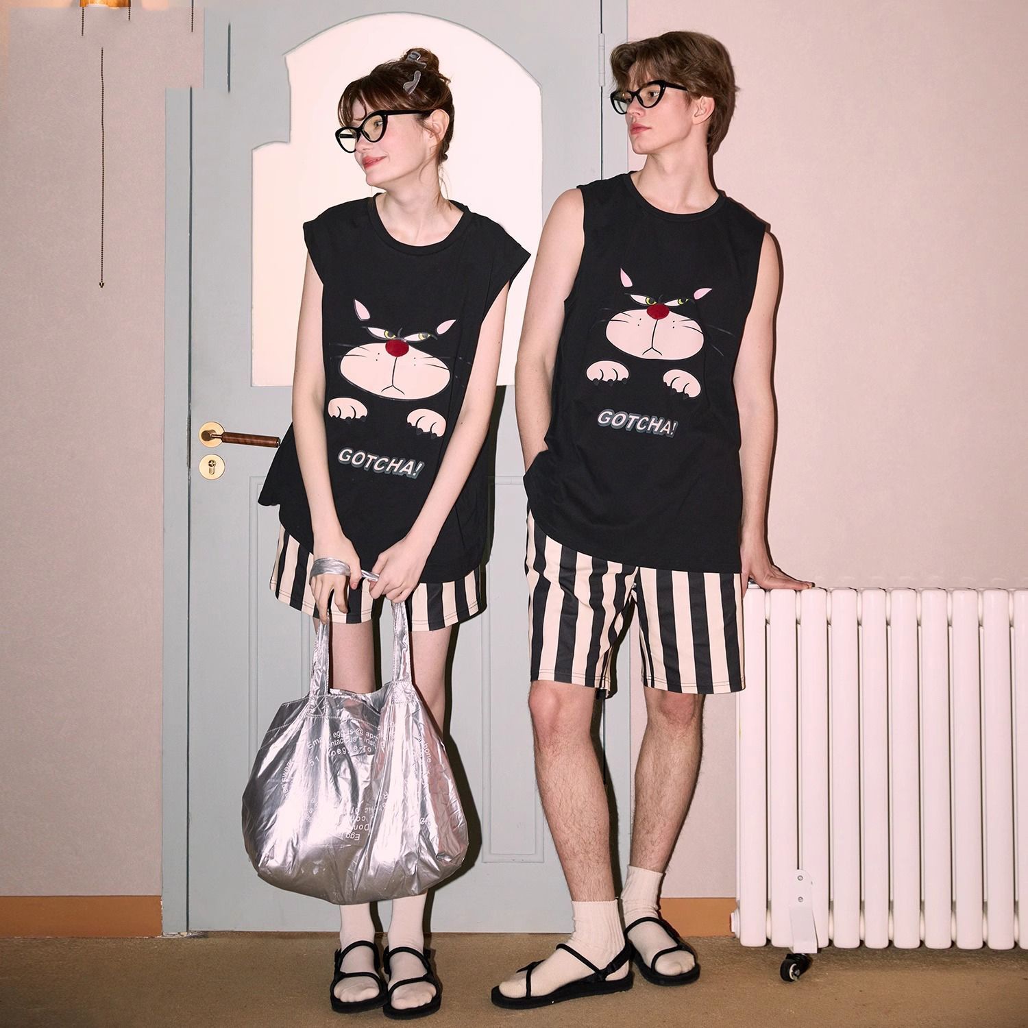 여성을위한 Nutshell 같은 스타일 커플 잠옷 여름 새로운 순수 코튼 민소매 Rusefu 만화 남성 홈웨어 세트 여성스토어 가기