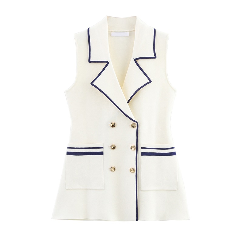 KAOPU ZA 2025 새로운 여름 유럽과 미국 의류 심플 트림 라펠 민소매 니트 조끼스토어 가기