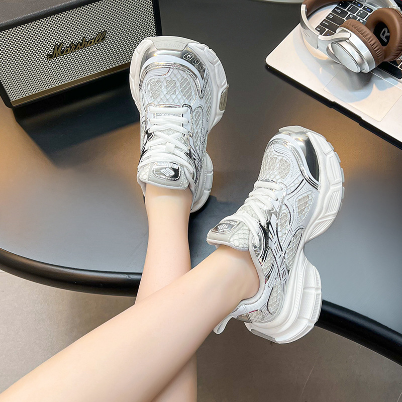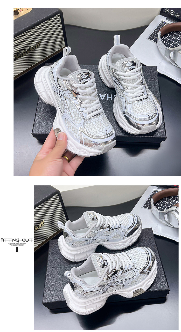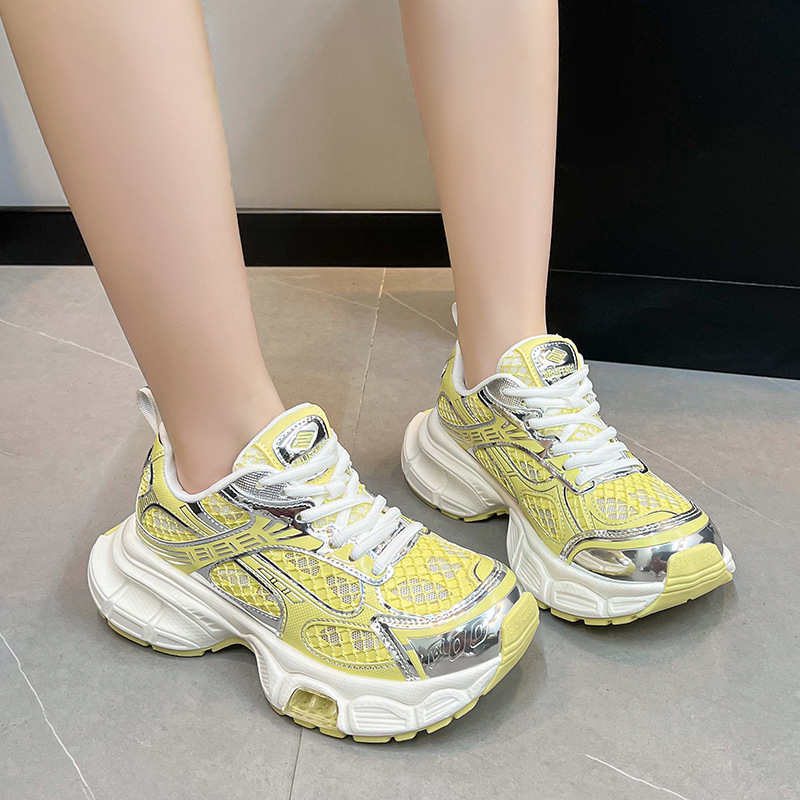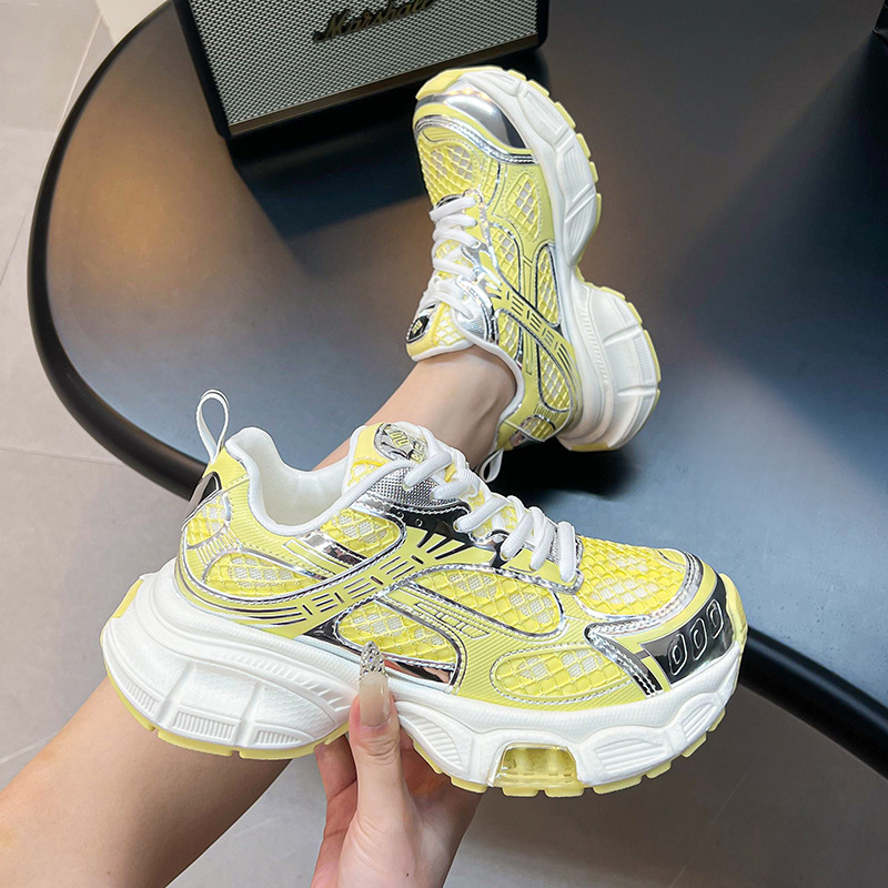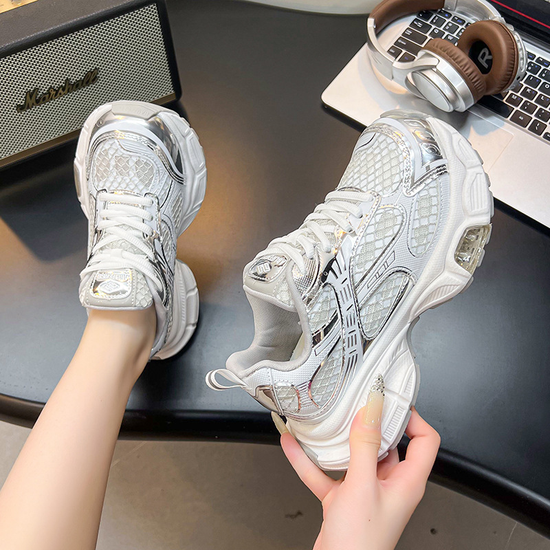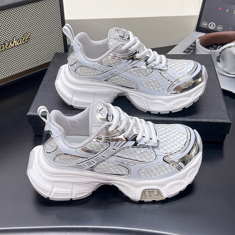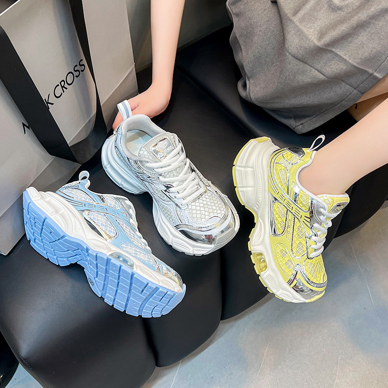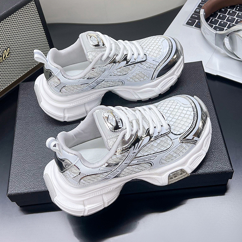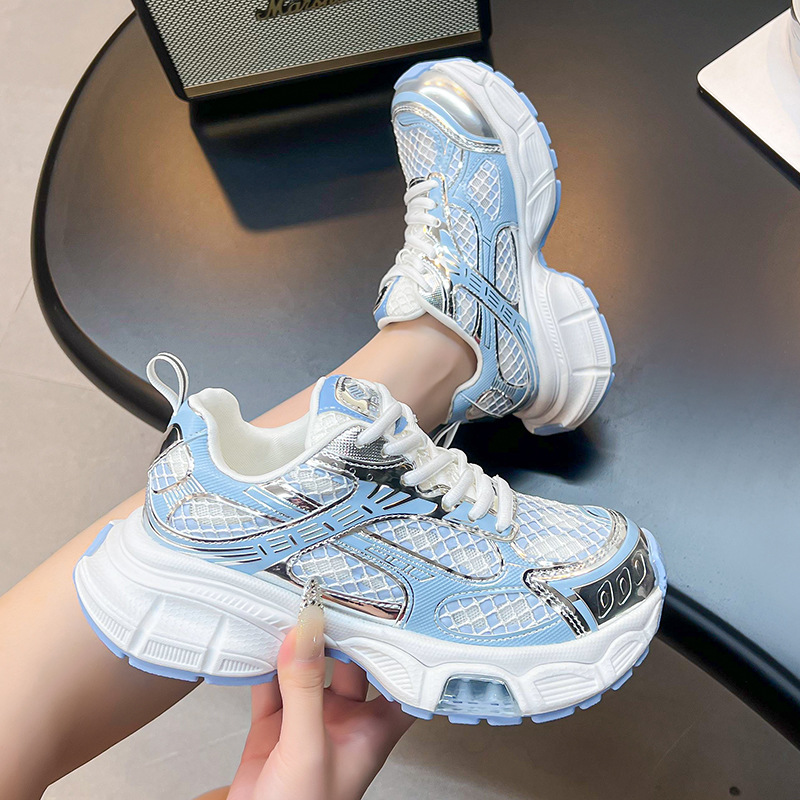 2025년 새로운 두꺼운 밑창 캐주얼 운동화, 패셔너블하고 다재다능한 틈새 시장, 메쉬 인기 아빠 신발, 가볍고 통기성