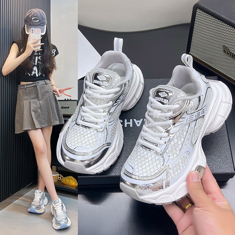 2025년 새로운 두꺼운 밑창 캐주얼 운동화, 패셔너블하고 다재다능한 틈새 시장, 메쉬 인기 아빠 신발, 가볍고 통기성스토어 가기