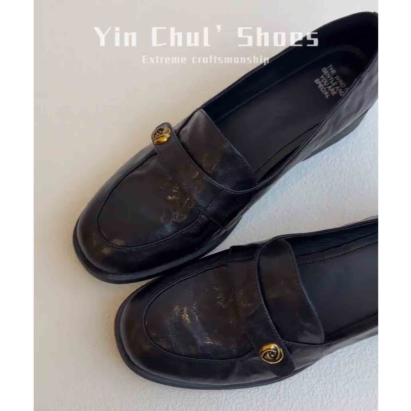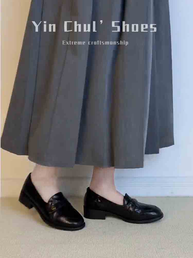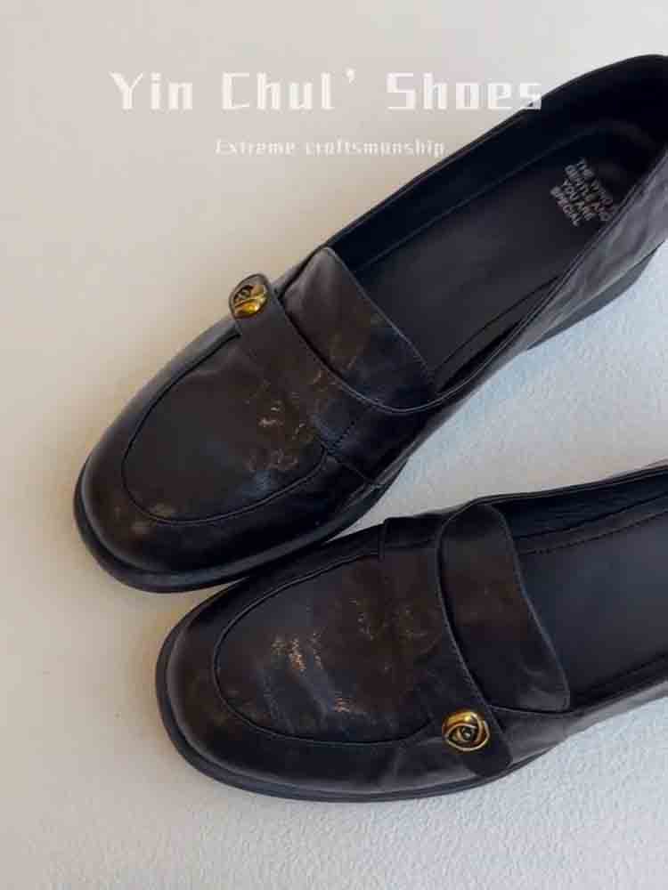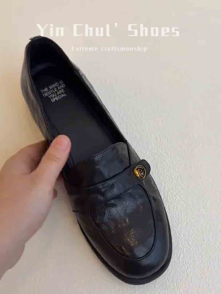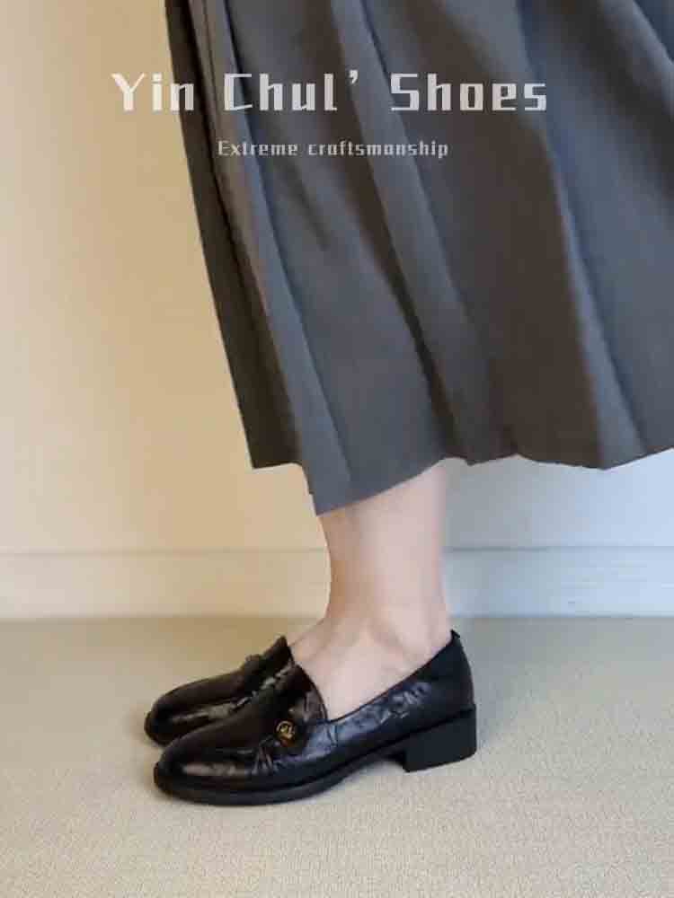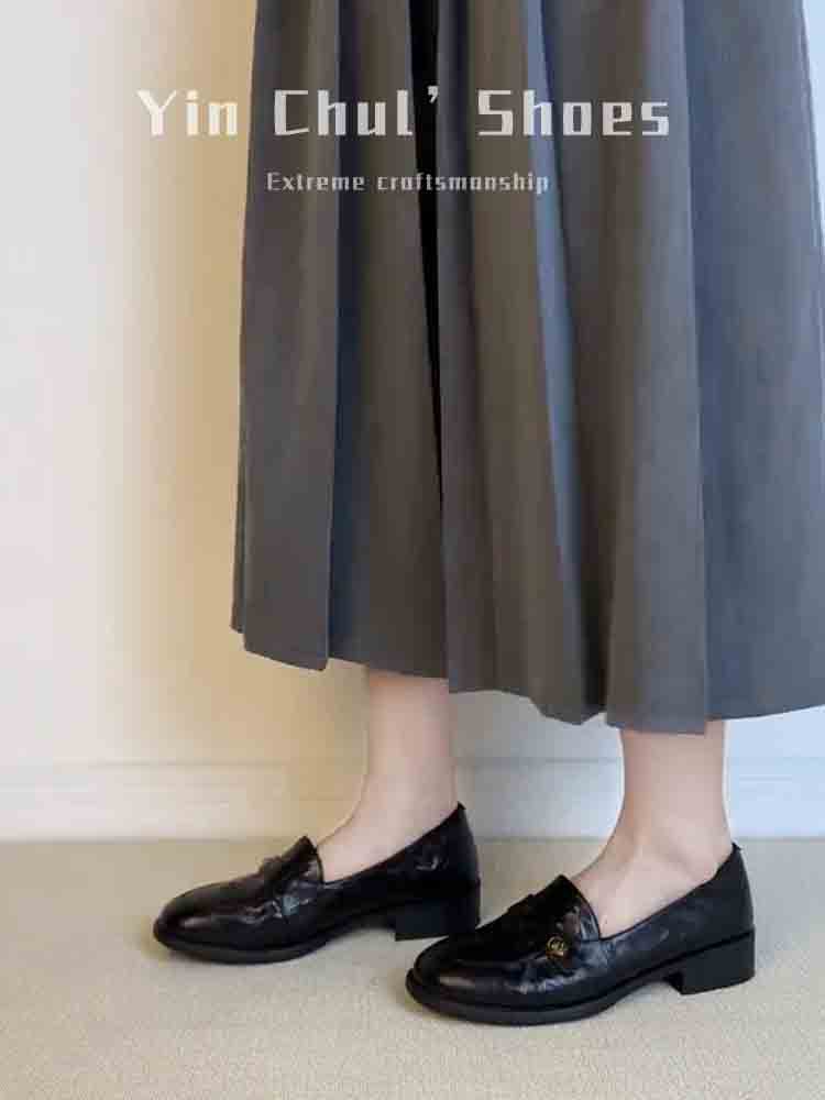 [재고 있음, 몇 초 안에 배송] 여성용 동백 슬립온 로퍼, 영국식 작은 가죽 신발, 다용도 복고풍 두꺼운 굽 신발스토어 가기