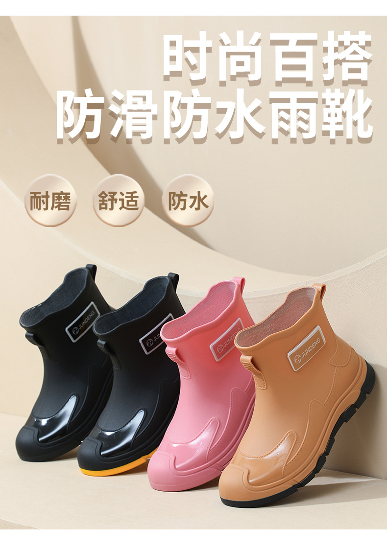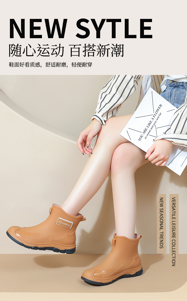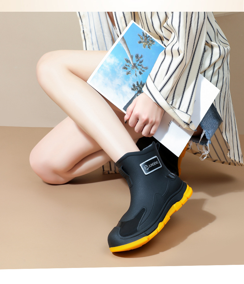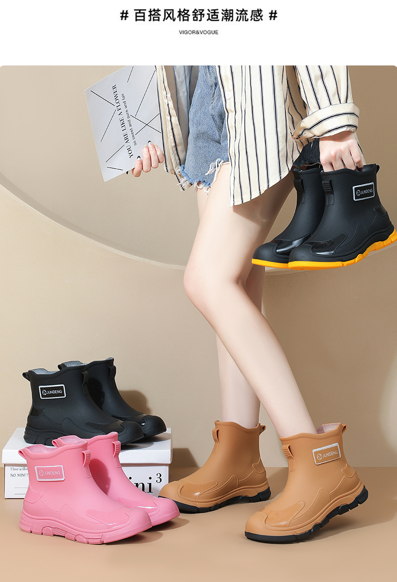 여성용 및 남성용 크로스보더 장화, 짧은 로우탑 장화, 미끄럼 방지 세차 워터슈즈, 벨벳 고무신, 방수 패션 워터부츠