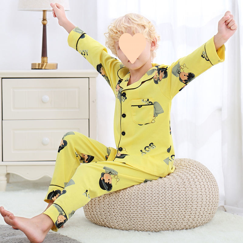 아동 잠옷, 봄, 가을 스타일, 큰 아동복, 긴팔 피부 친화적인 아기 면 부모-자식 의류, 아동 가정복 세트
