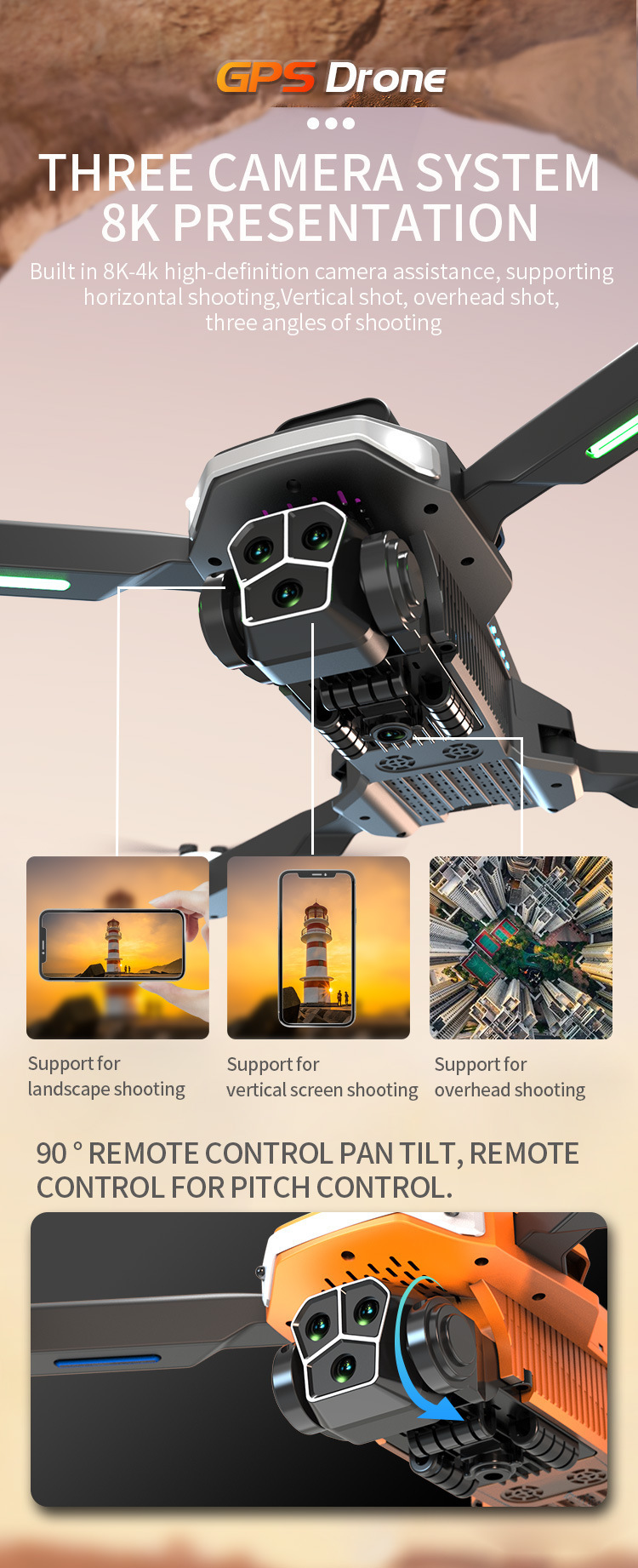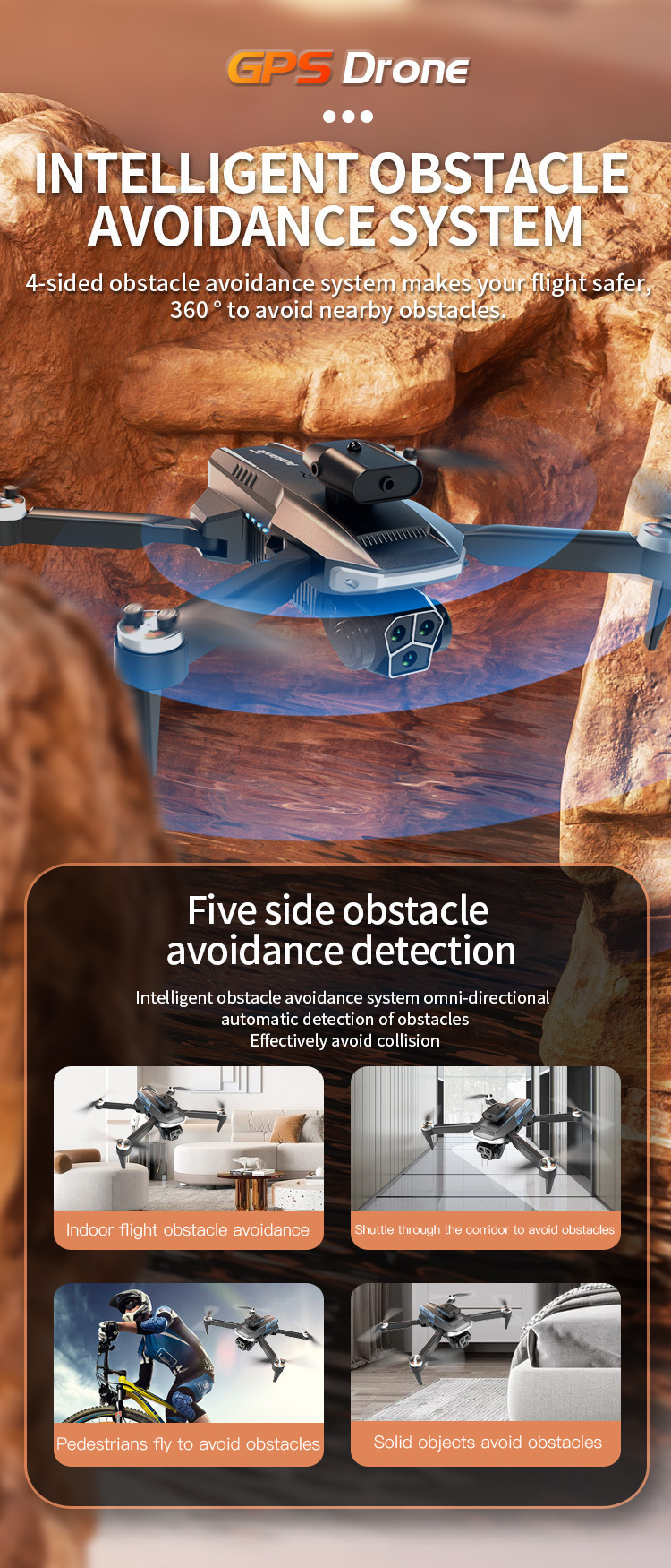 • 주황색(4면 광학 흐름 장애물 회피 + 카메라 3개) 5G에는 GPS가 있습니다.