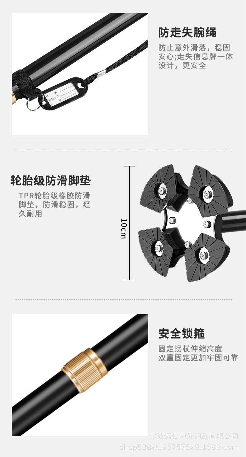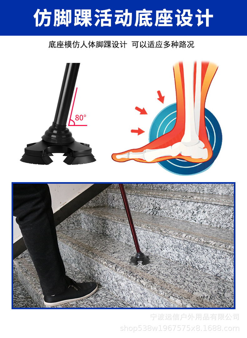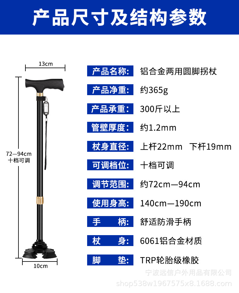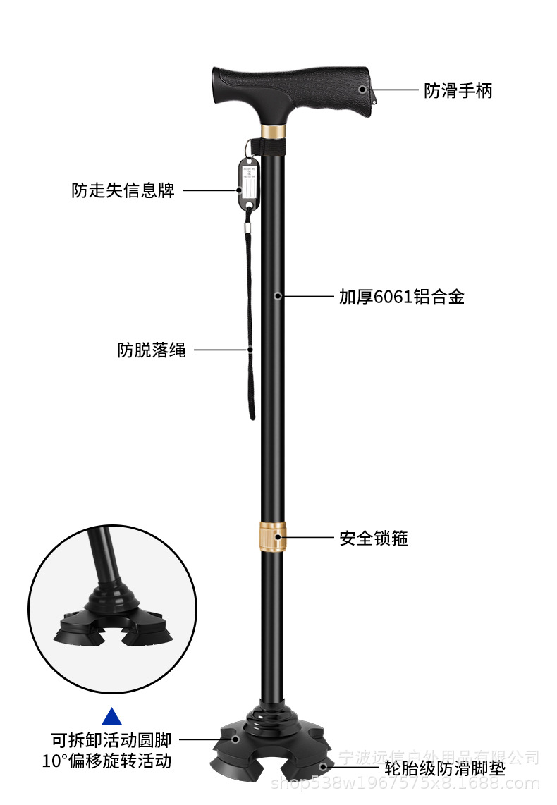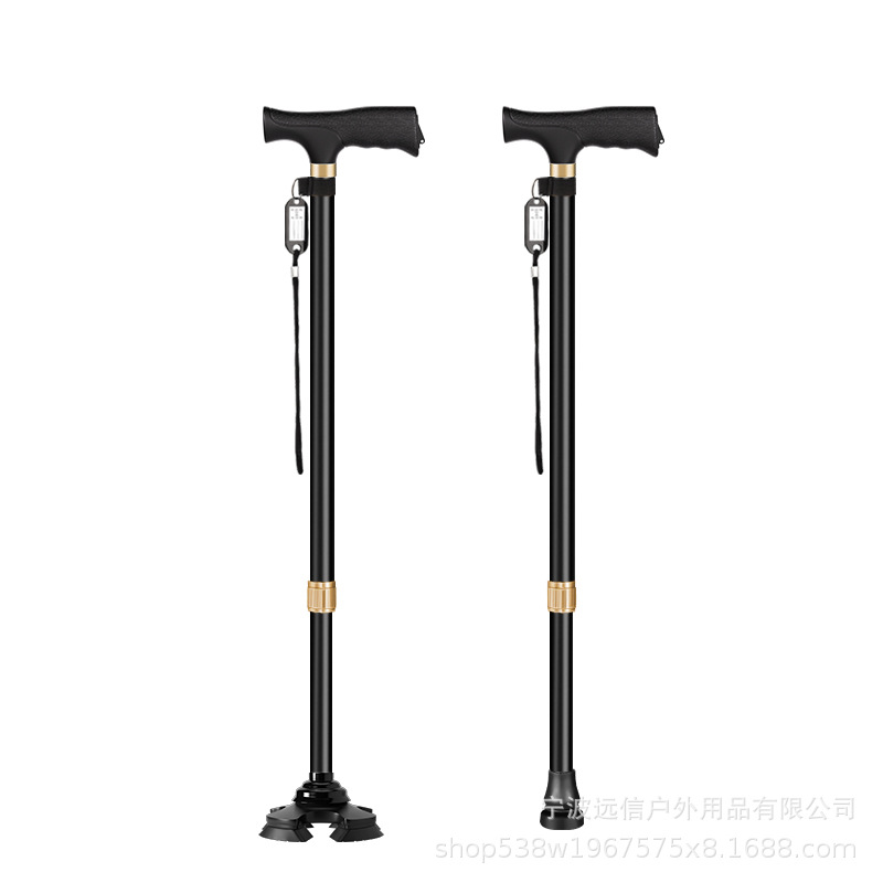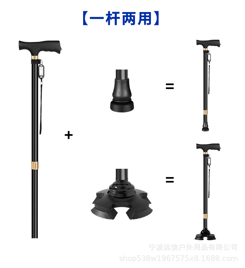 노인을 위한 알루미늄 합금 지팡이, 고무로 덮인 단일 다리 이동식 4개 다리 이중 목적 지팡이, 길이 조절 가능한 지팡이 도매