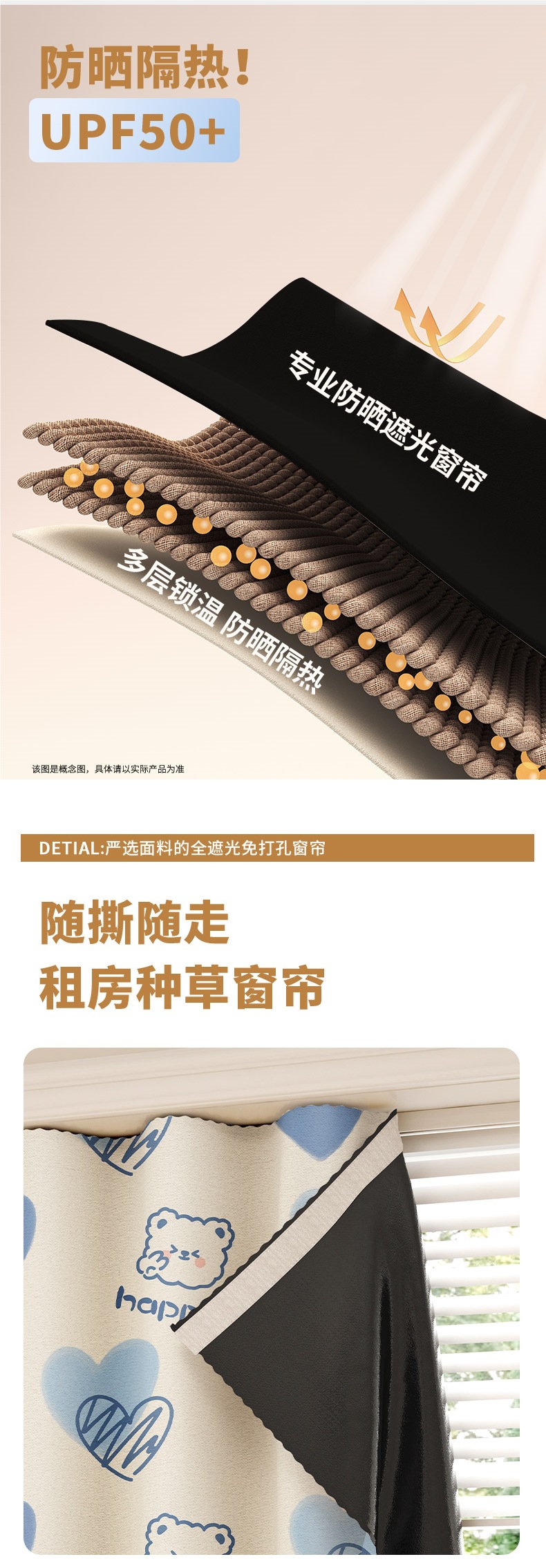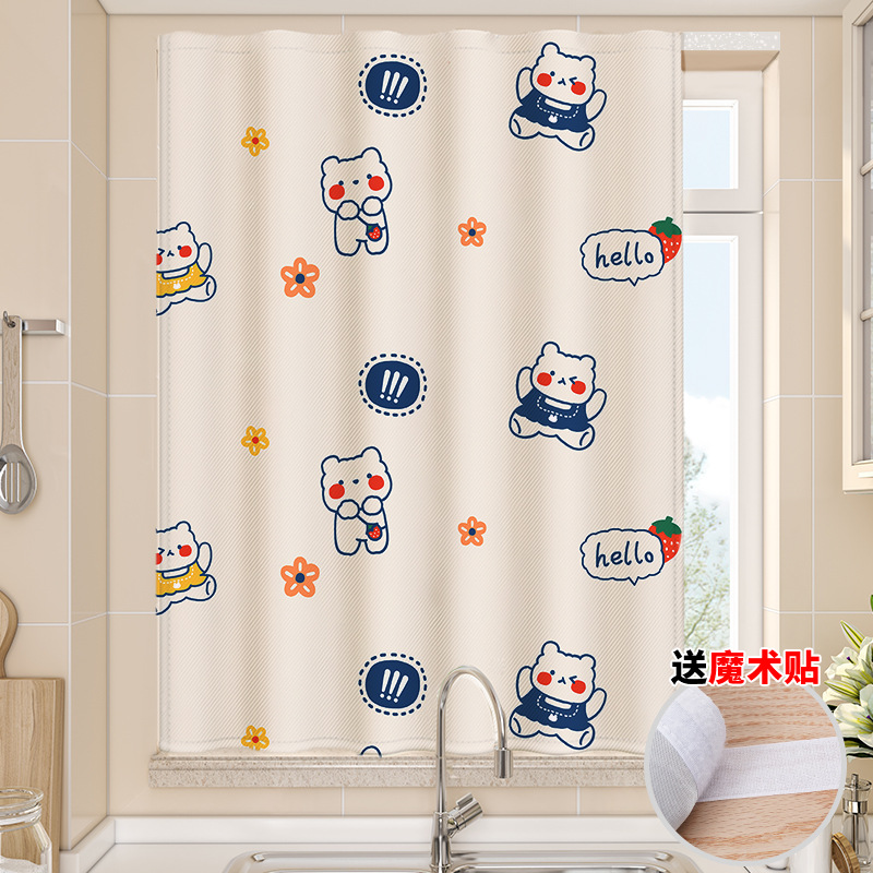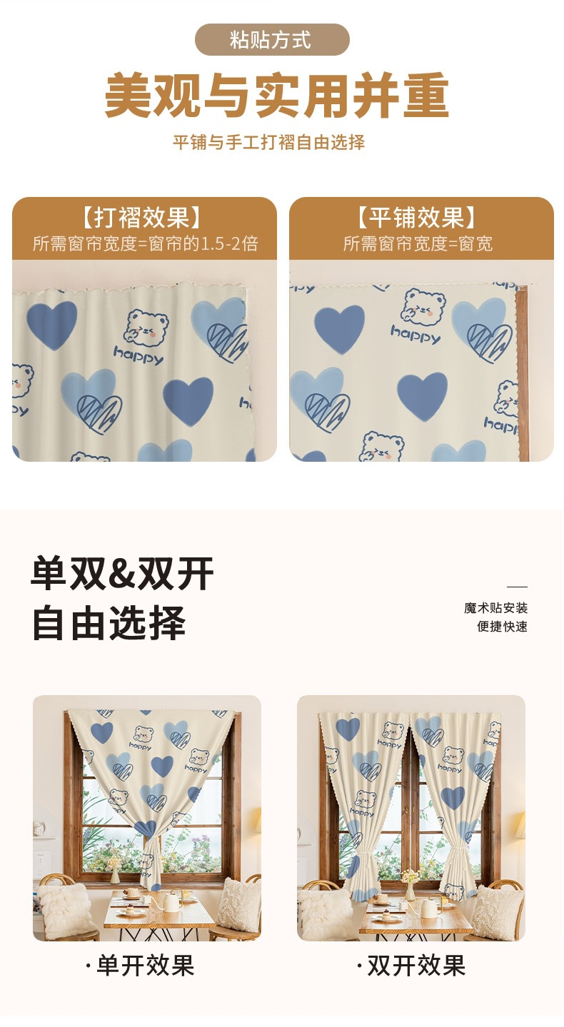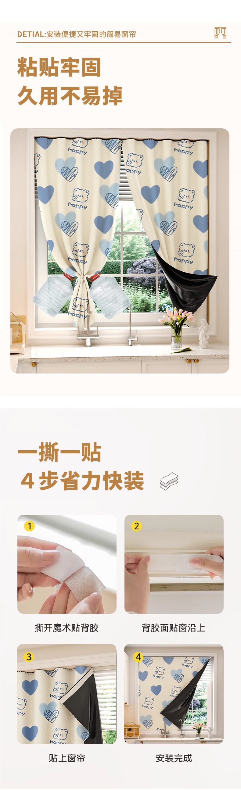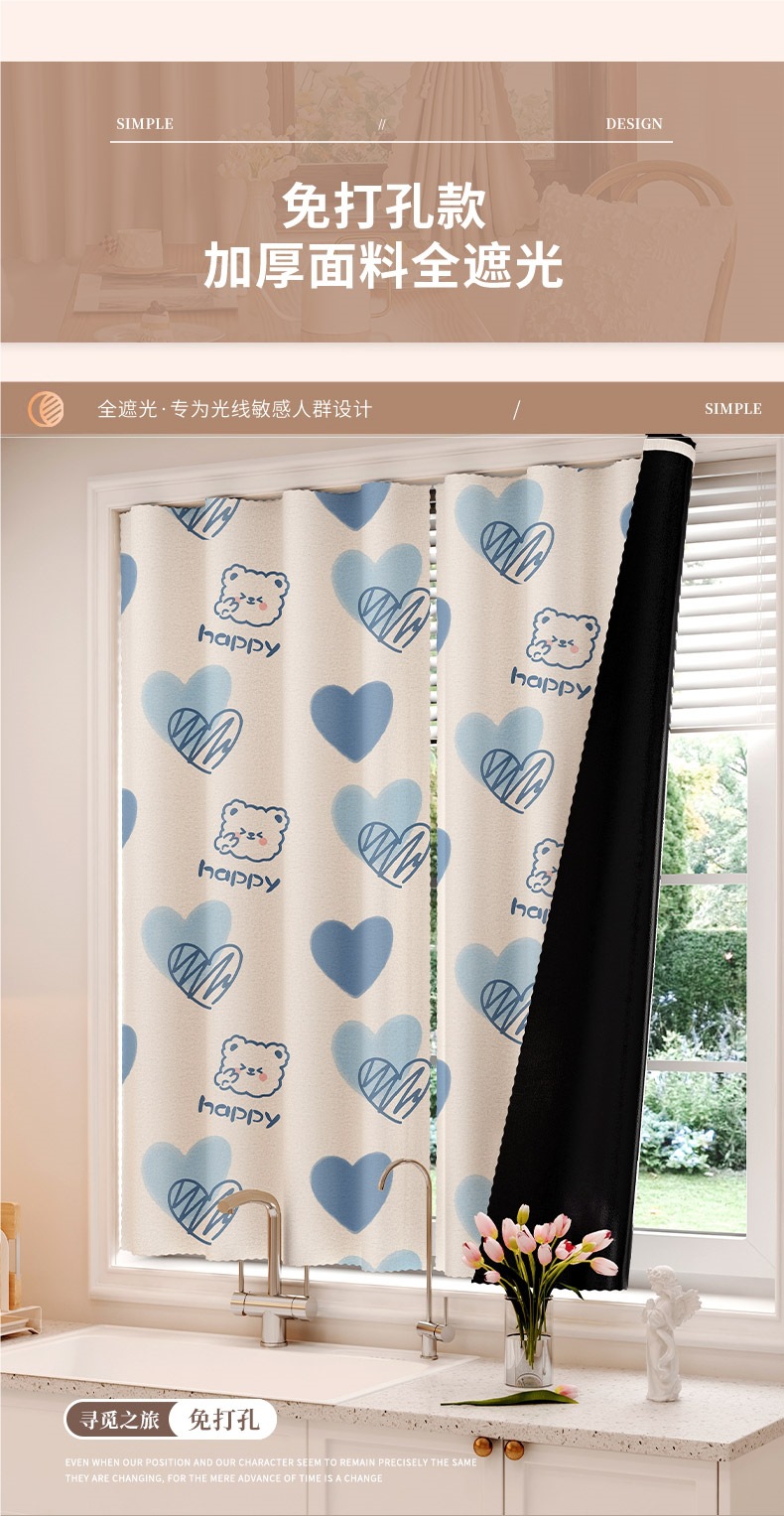 침실 바람막이 천을 설치하기 위해 구멍을 뚫을 필요가 없는 완전 암막 커튼, 벨크로 설치, 발코니 주방, 어린이 방 차양 커튼