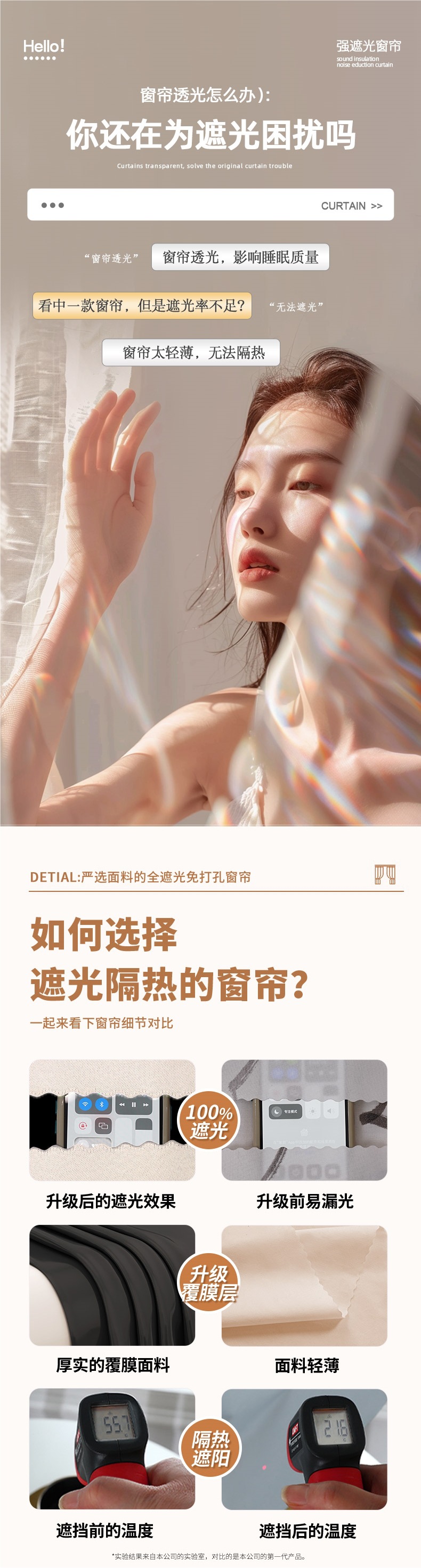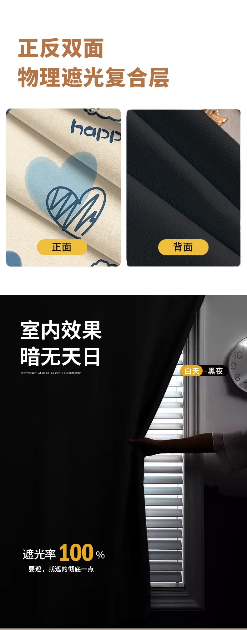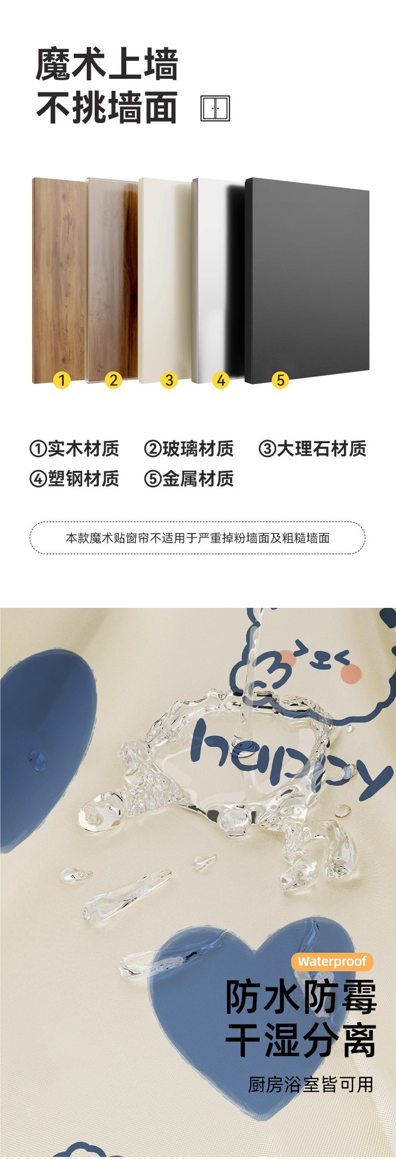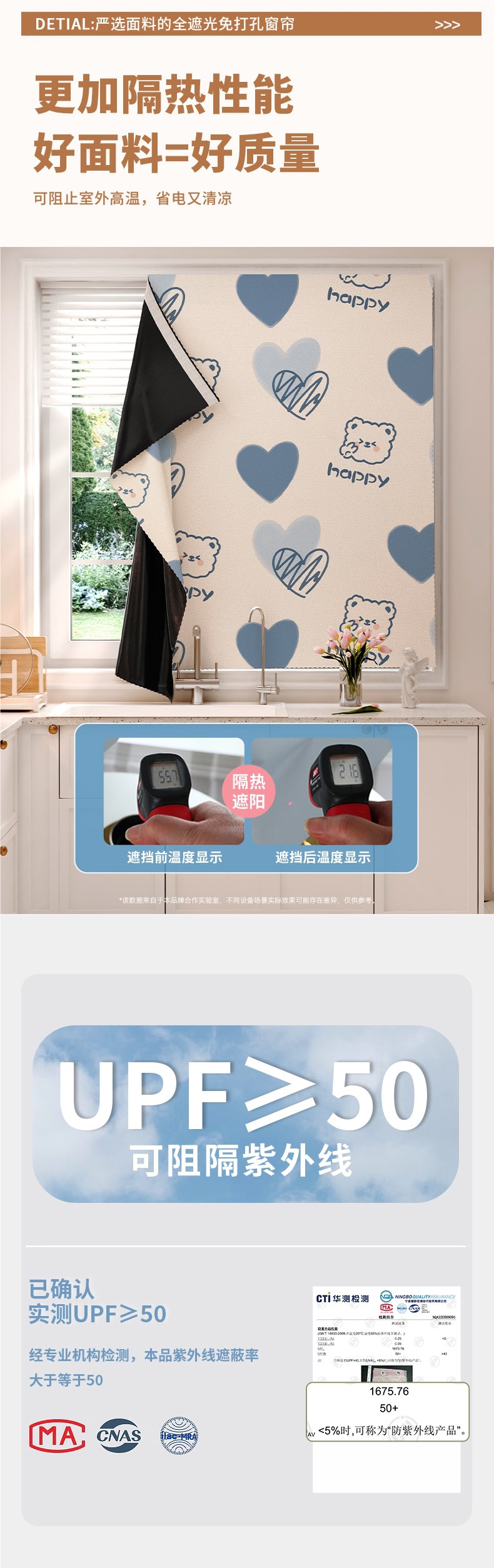 침실 바람막이 천을 설치하기 위해 구멍을 뚫을 필요가 없는 완전 암막 커튼, 벨크로 설치, 발코니 주방, 어린이 방 차양 커튼