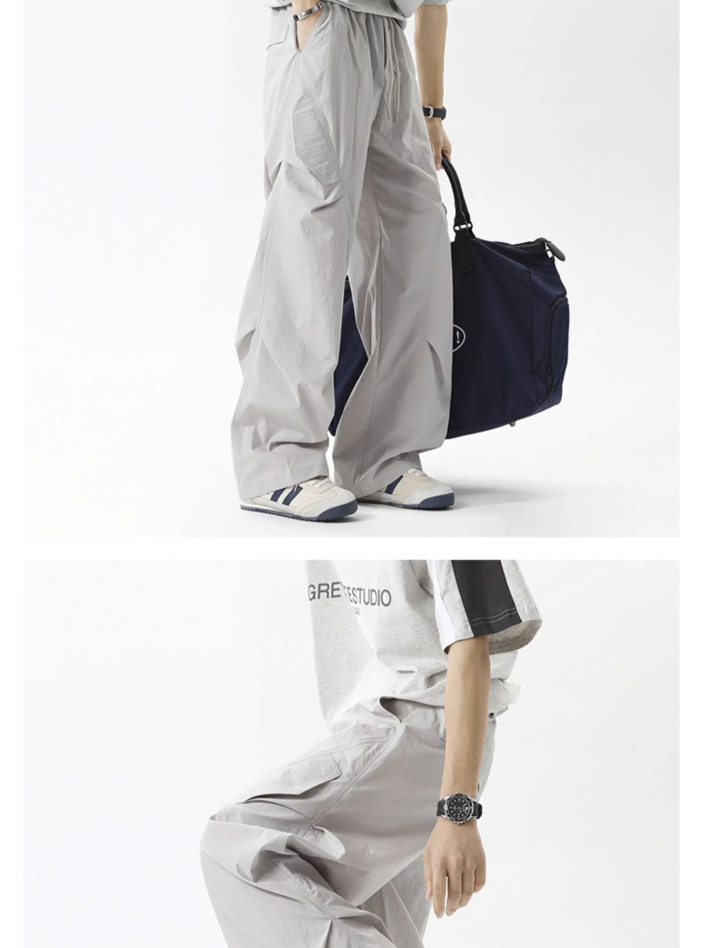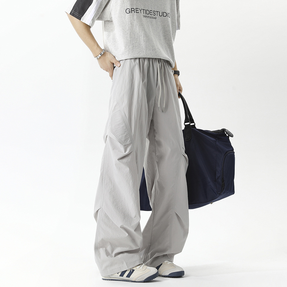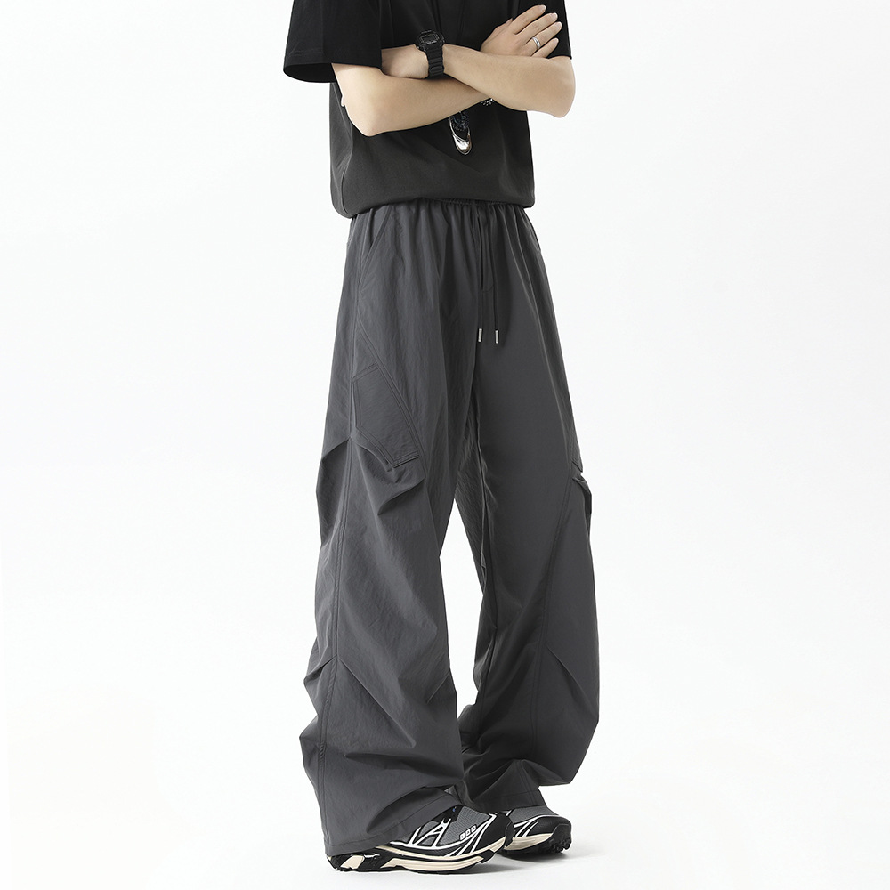 소프트 마운틴 그레이 아이스 실크 속건성 작업복 남성용 여름 주름 디자인 공수 바지 아메리칸 방수 충전 바지
