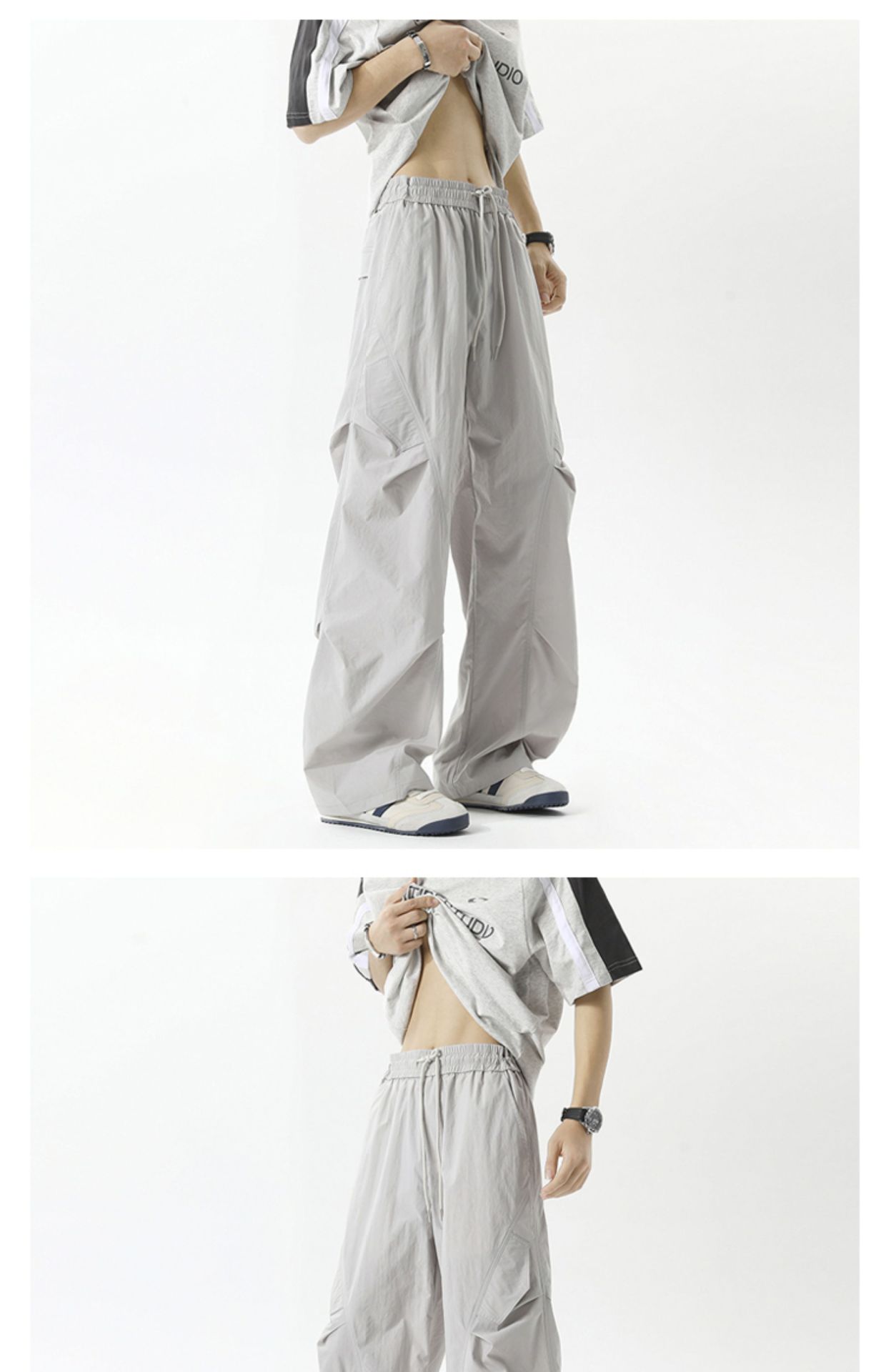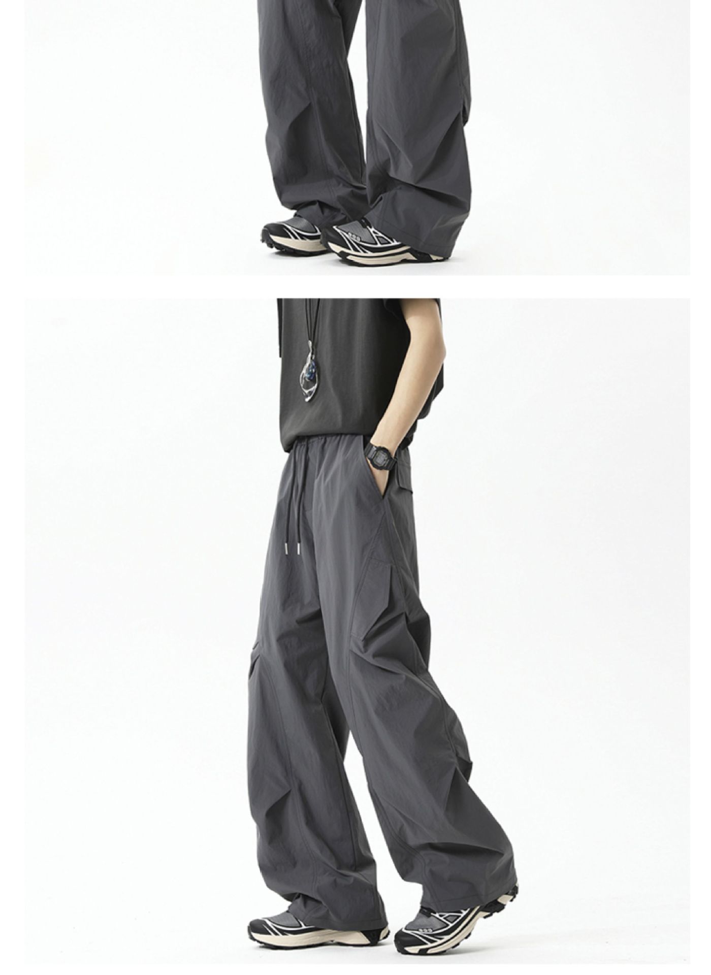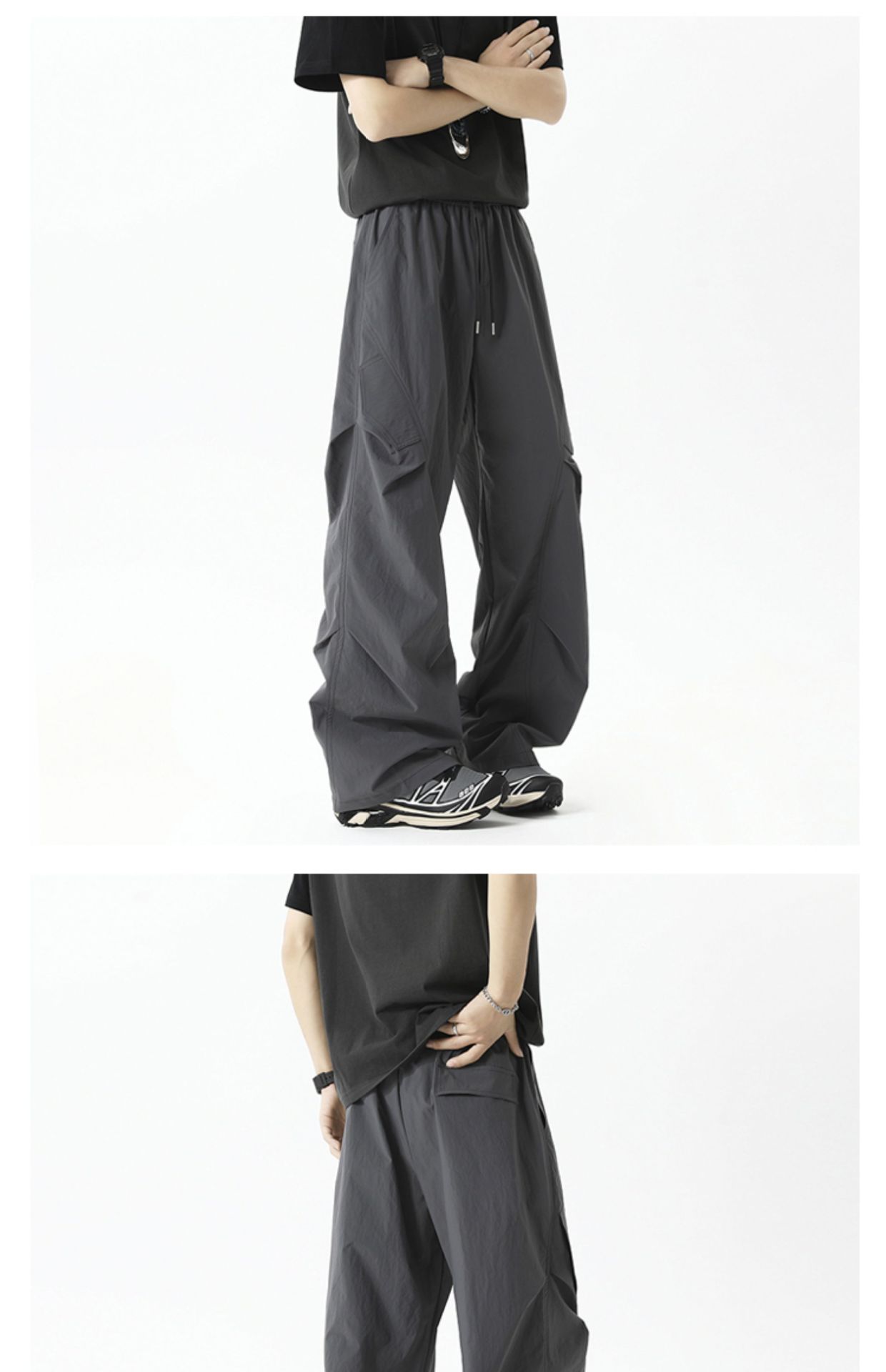 소프트 마운틴 그레이 아이스 실크 속건성 작업복 남성용 여름 주름 디자인 공수 바지 아메리칸 방수 충전 바지