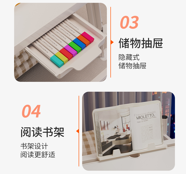 • ⊙◎●○◆◇[특대형 펄화이트 4단 리프트] 70*40*42 카드슬롯 + 컵홀더 + 서랍 + 책장 ⊙◎●○◆◇
