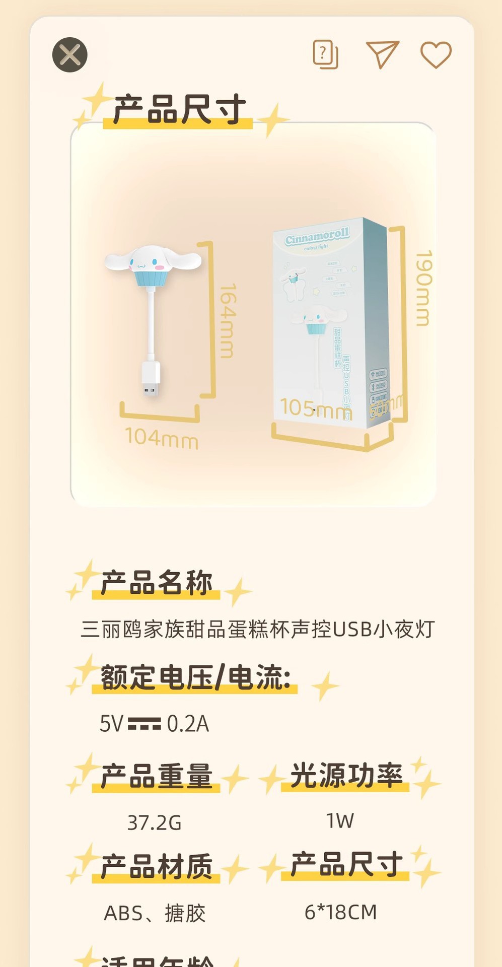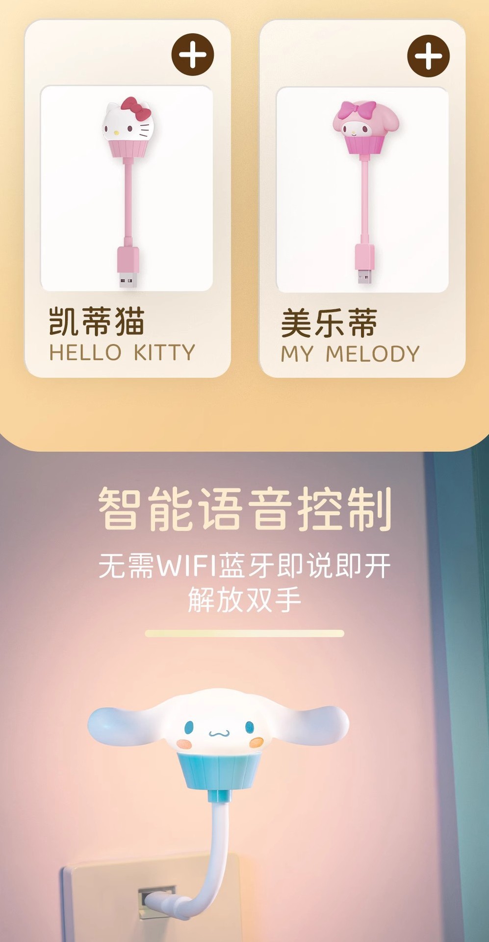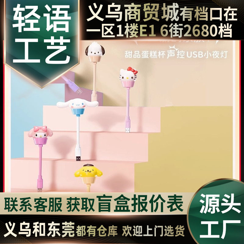 정품 산리오 패밀리 디저트 케이크 컵 USB 음성 제어 야간 조명 쿠로미 큰 귀 개 도매 선물 없음스토어 가기