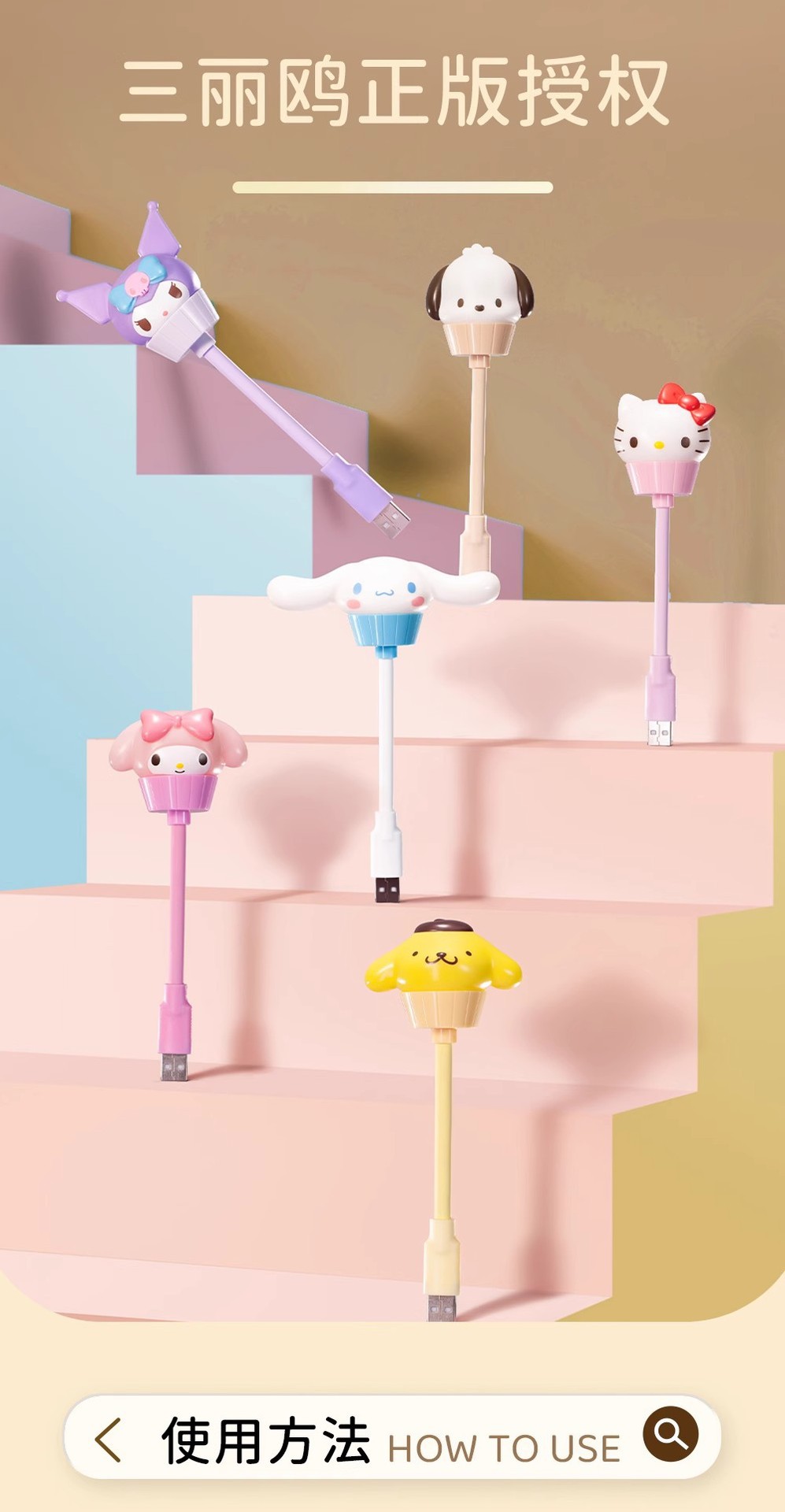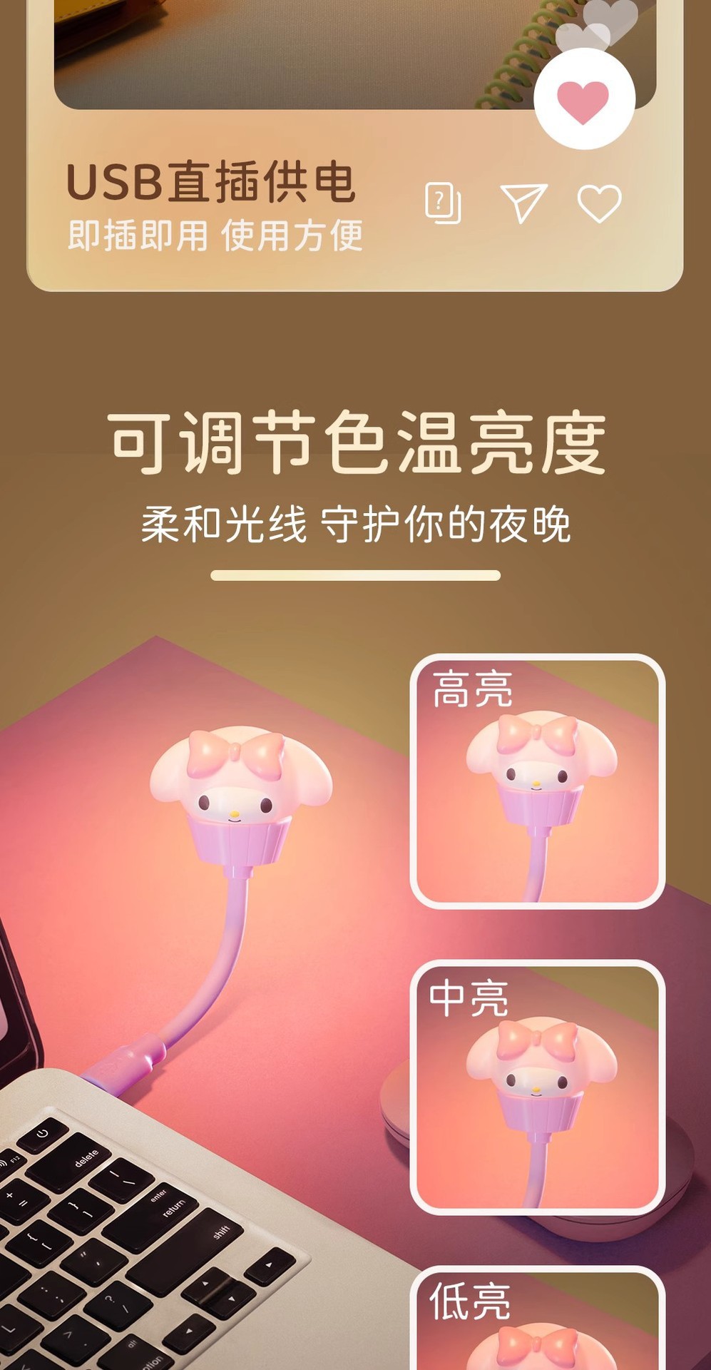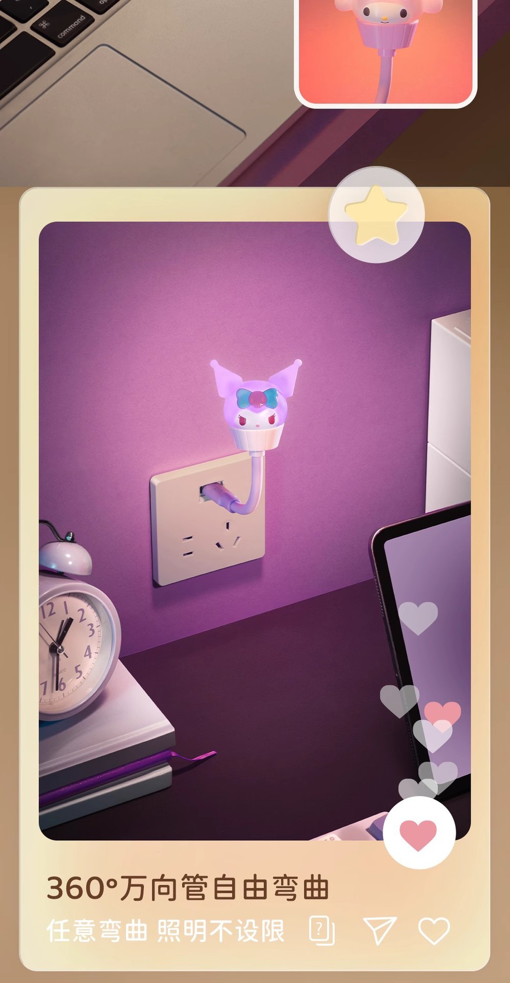 정품 산리오 패밀리 디저트 케이크 컵 USB 음성 제어 야간 조명 쿠로미 큰 귀 개 도매 선물 없음스토어 가기