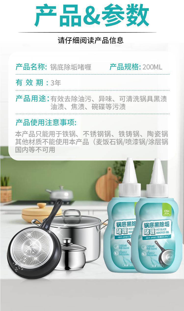 냄비 바닥 검은 물때 세척제, 강력 세척 스테인리스 주방용품 오염 제거 및 스케일 제거제, 냄비 바닥 세척 유물 스케일 제거 젤스토어 가기