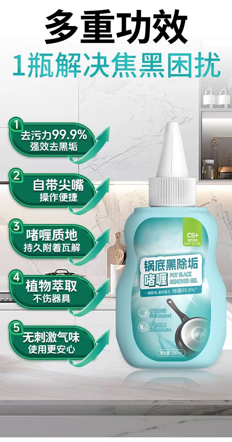 냄비 바닥 검은 물때 세척제, 강력 세척 스테인리스 주방용품 오염 제거 및 스케일 제거제, 냄비 바닥 세척 유물 스케일 제거 젤