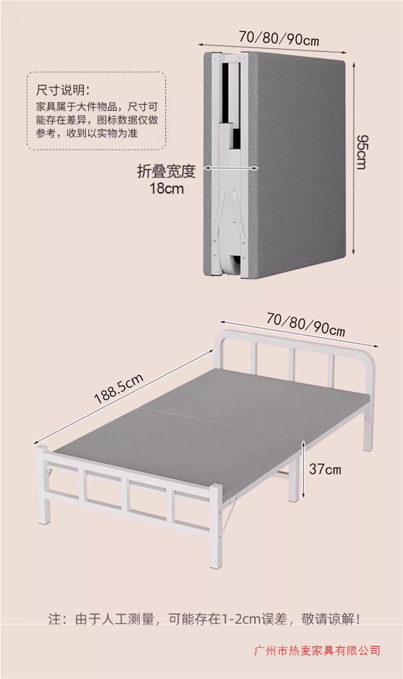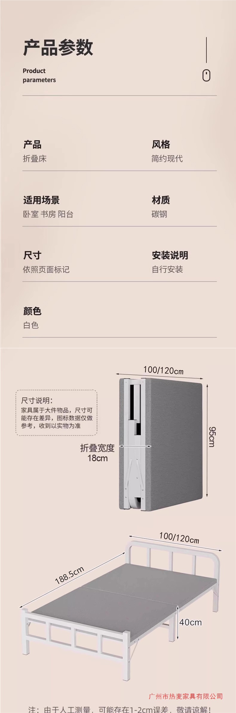 접이식 침대 싱글 침대 가정용 간이 낮잠 침대 1.2m 성인 기숙사 임대 더블 하드 철제 침대