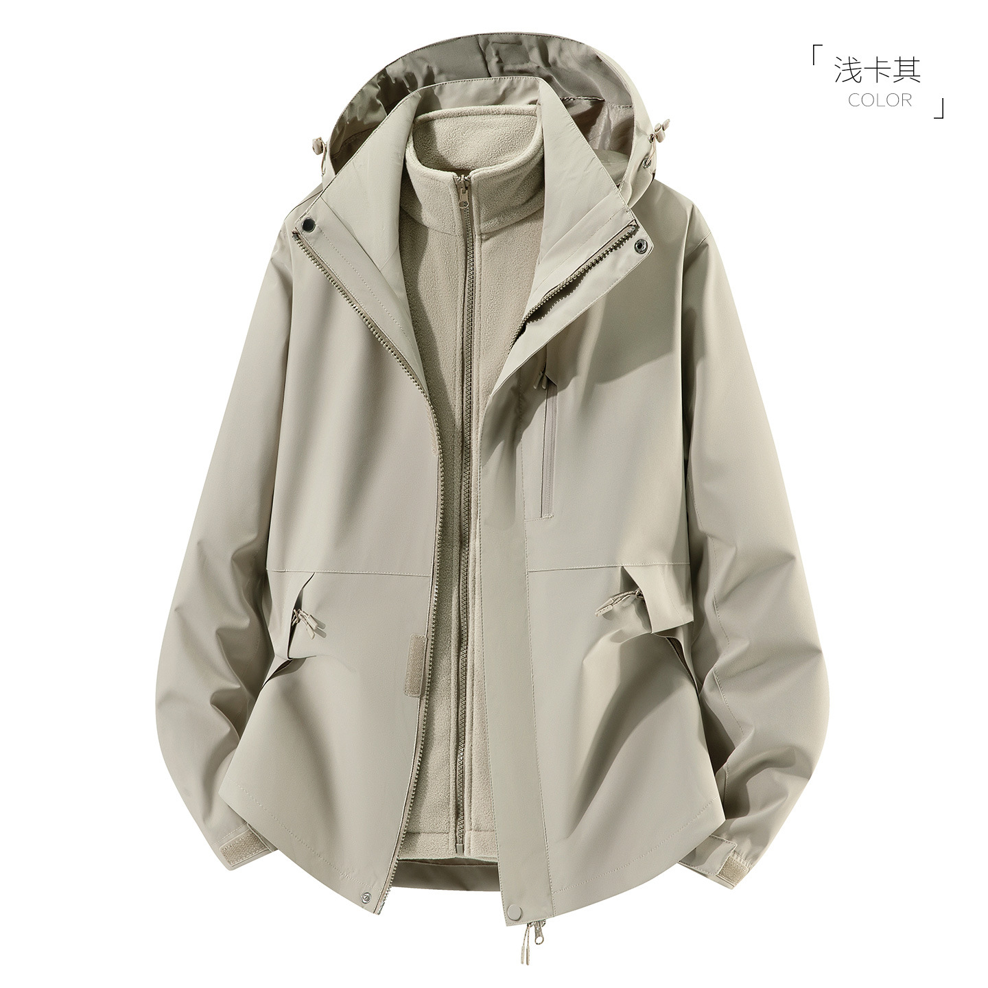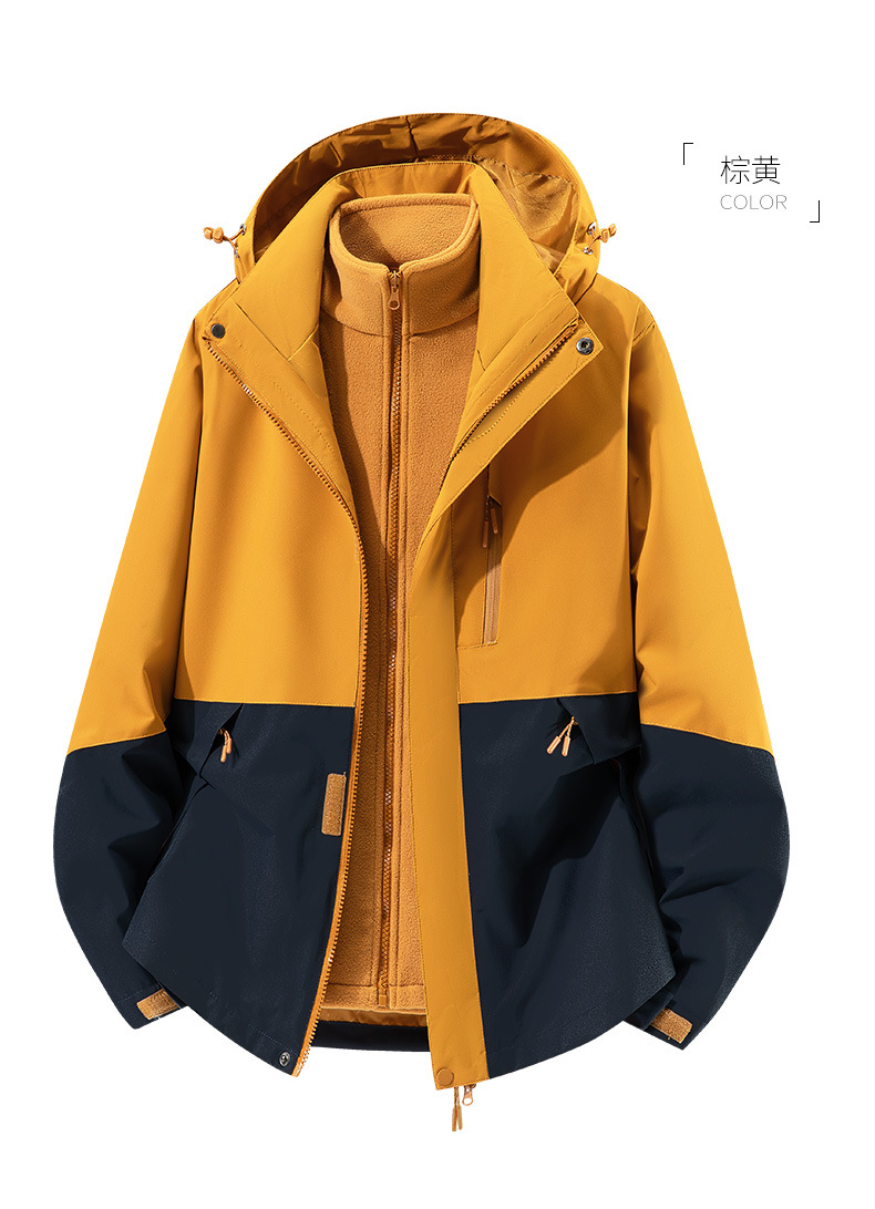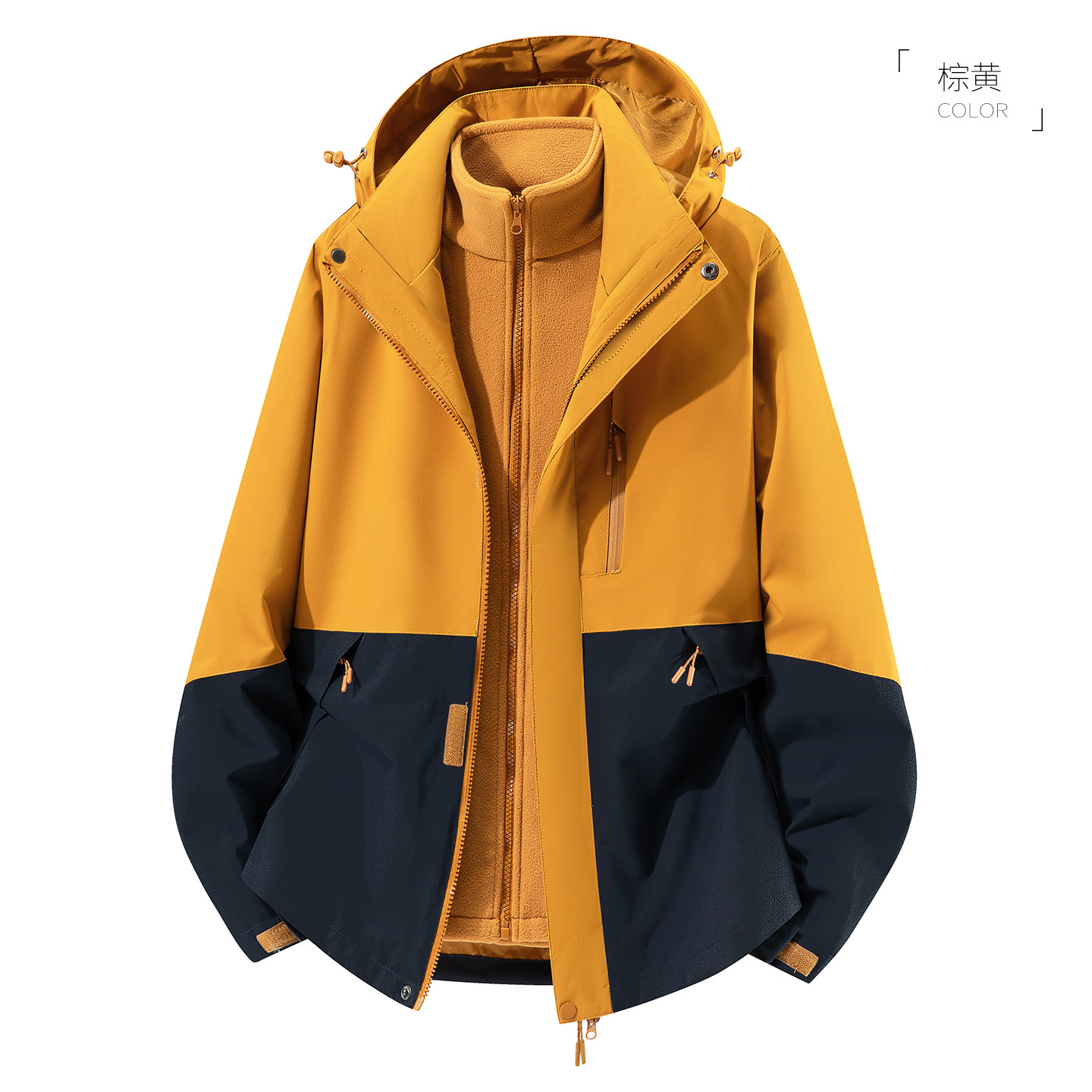 남녀공용 카멜색 3-in-1 캐주얼 재킷, 가을 겨울 작업복, 오염 방지 작업복, 등산용 보온 재킷, 맞춤 제작스토어 가기