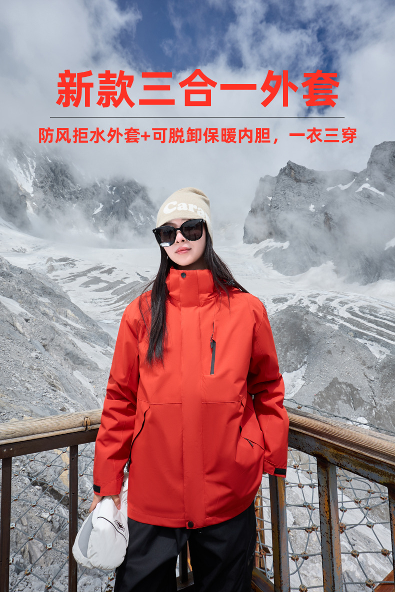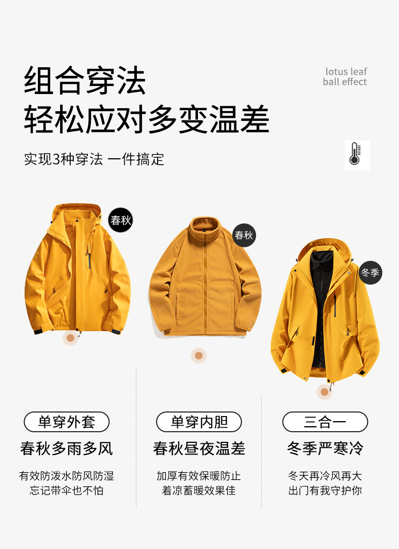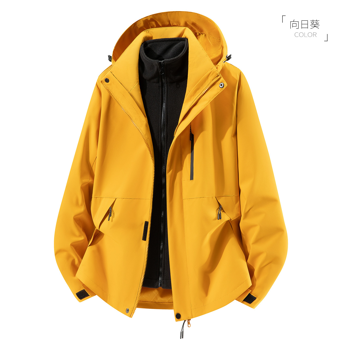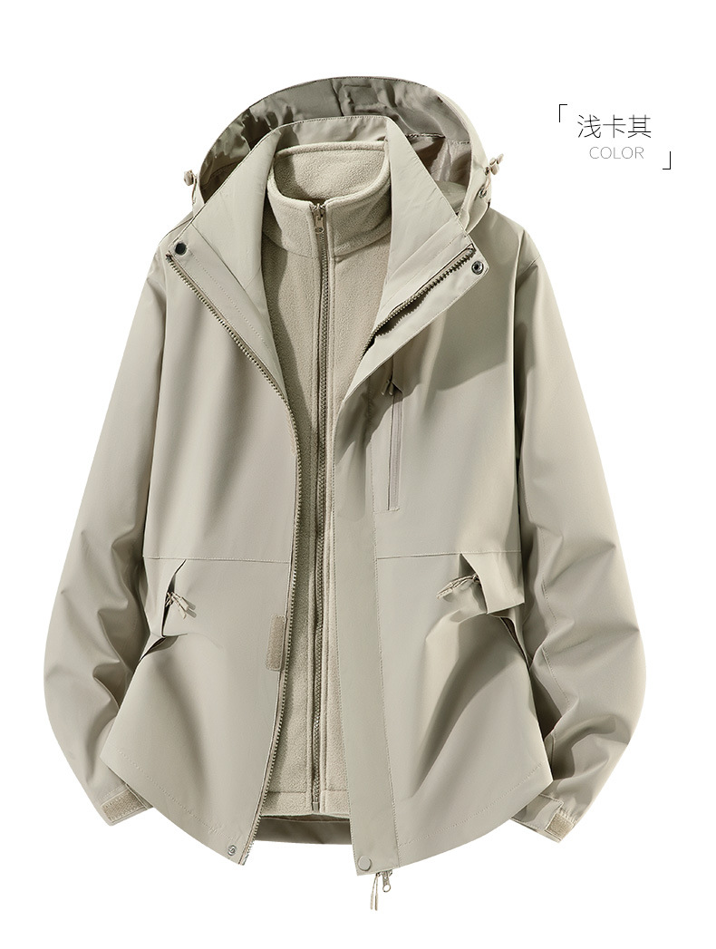 남녀공용 카멜색 3-in-1 캐주얼 재킷, 가을 겨울 작업복, 오염 방지 작업복, 등산용 보온 재킷, 맞춤 제작스토어 가기
