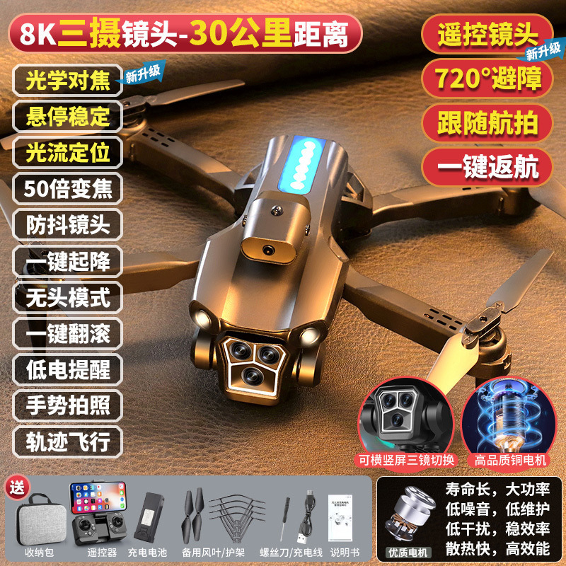 • [조정 가능한 안정화] 8K 트리플 카메라 [장애물 회피 및 누구와 함께 복귀] 30km