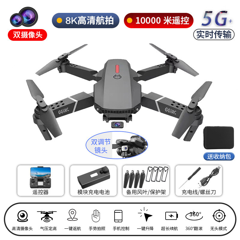 • 블랙 8K 듀얼 카메라 [흔들림 방지 리턴] + 보관 가방 포지셔닝 10km