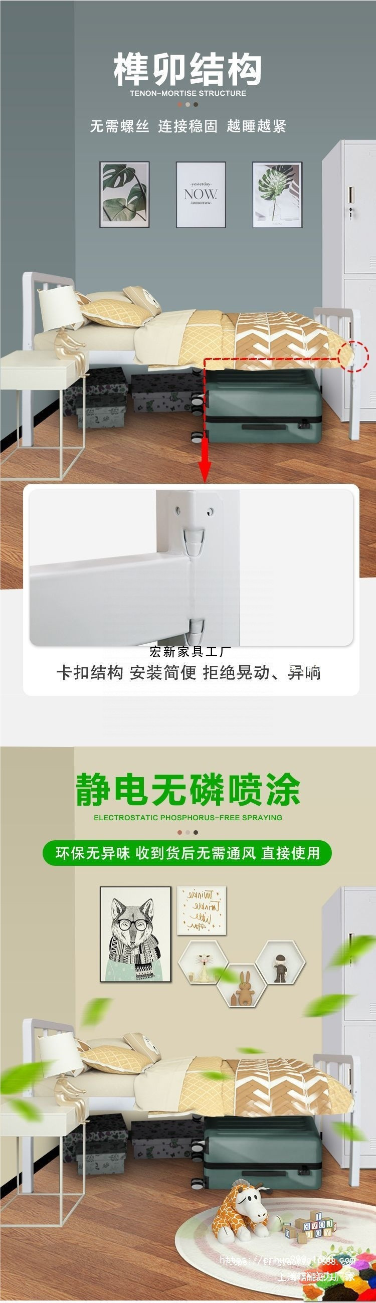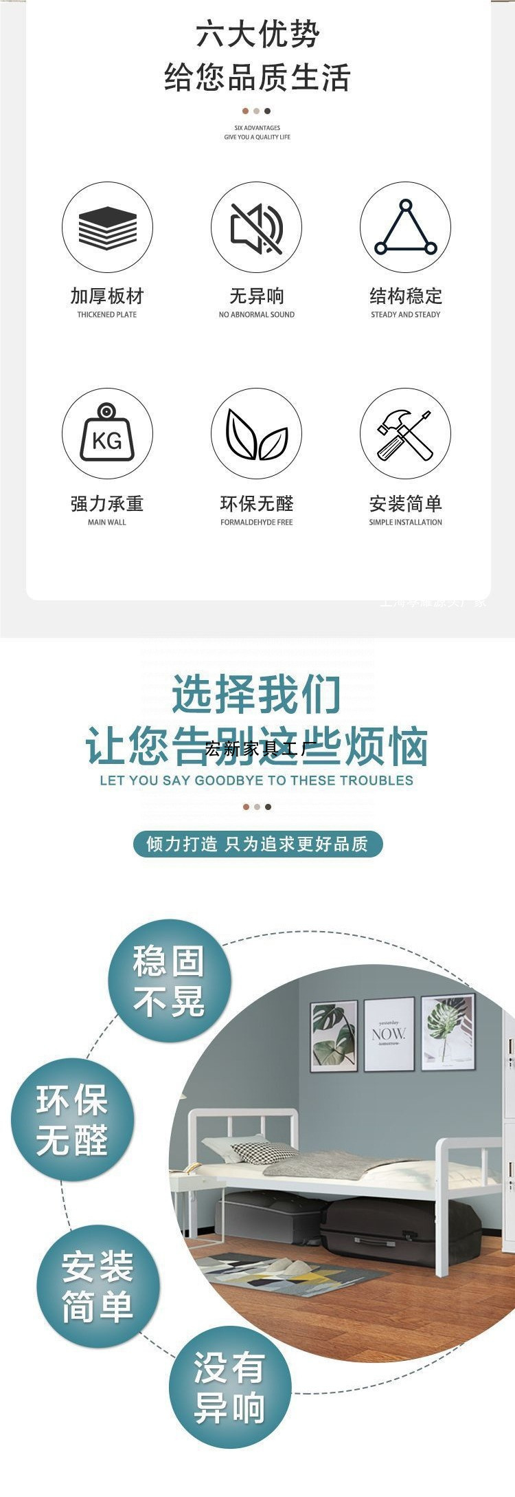 Hx2 도매 두꺼운 강화 강철 철 침대 싱글 침대 강화 간단한 임대 주택 현대 아파트 숙소