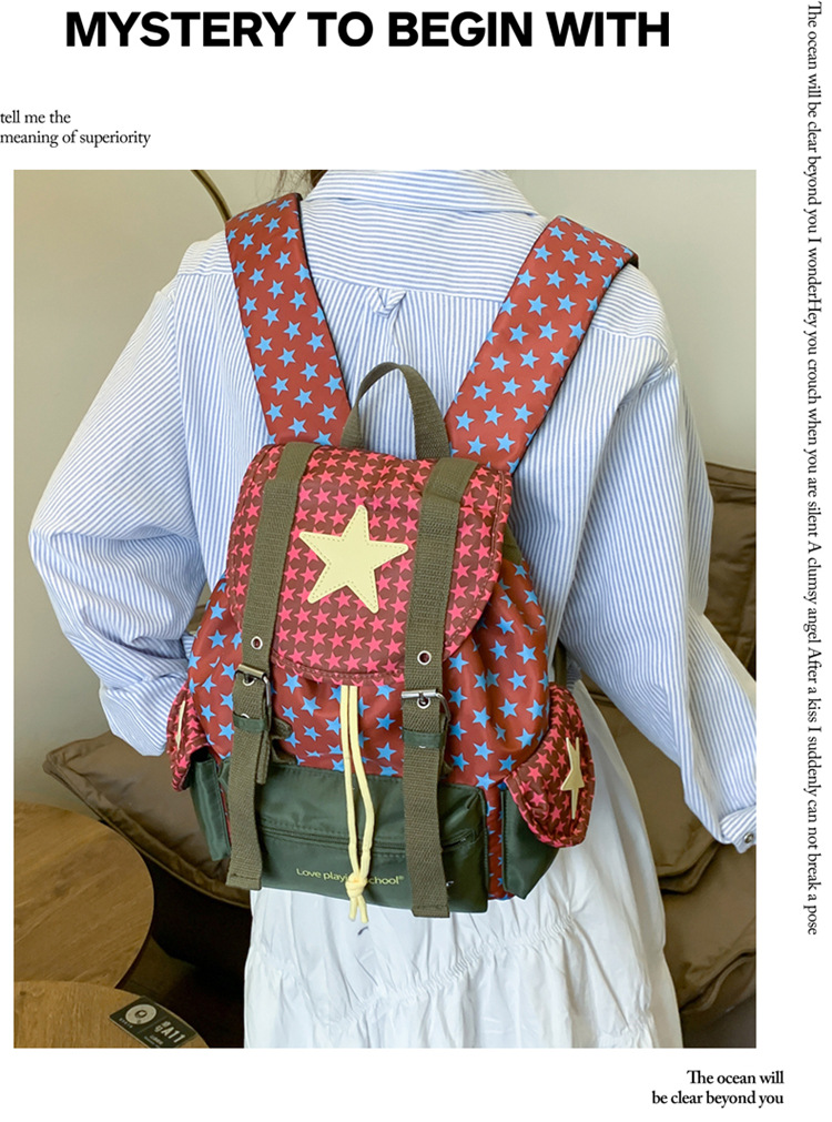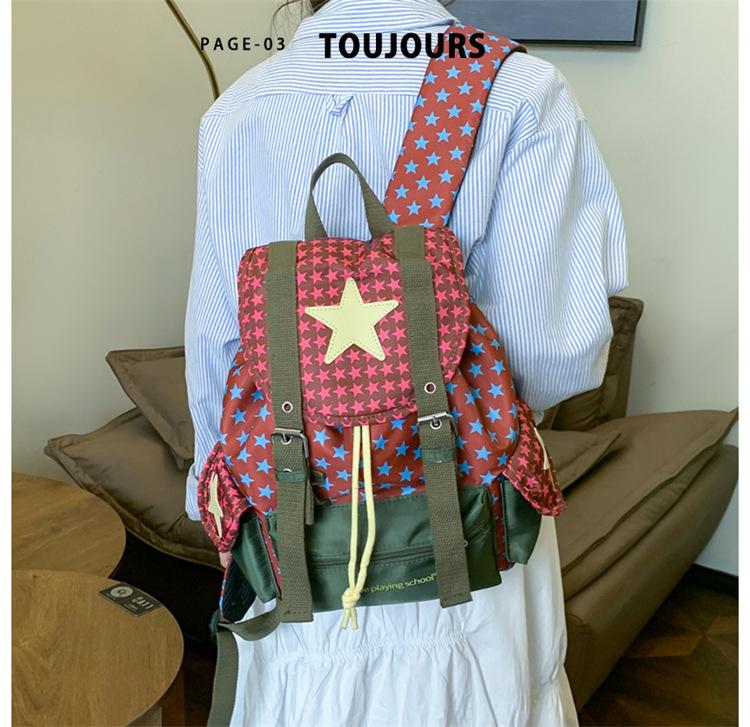 2025 새로운 작업복 스타일 Drawstring 플랩 배낭 야외 대용량 경량 배낭 여행 등산 가방 학교 가방