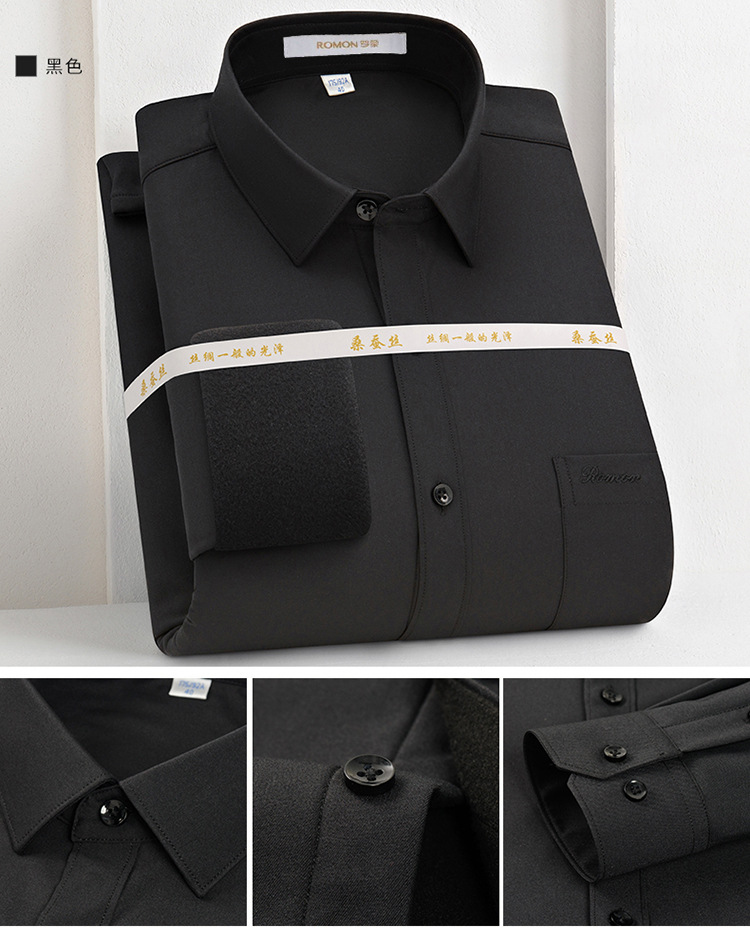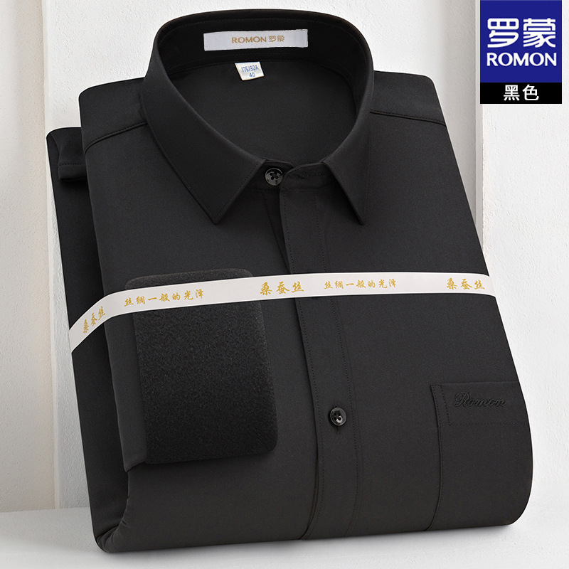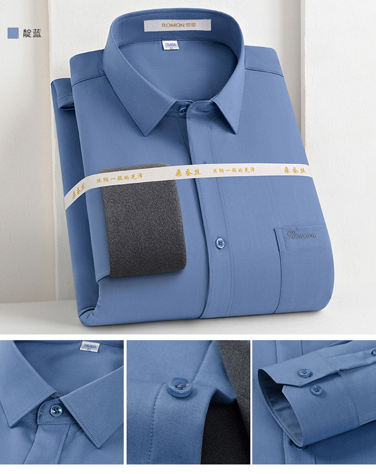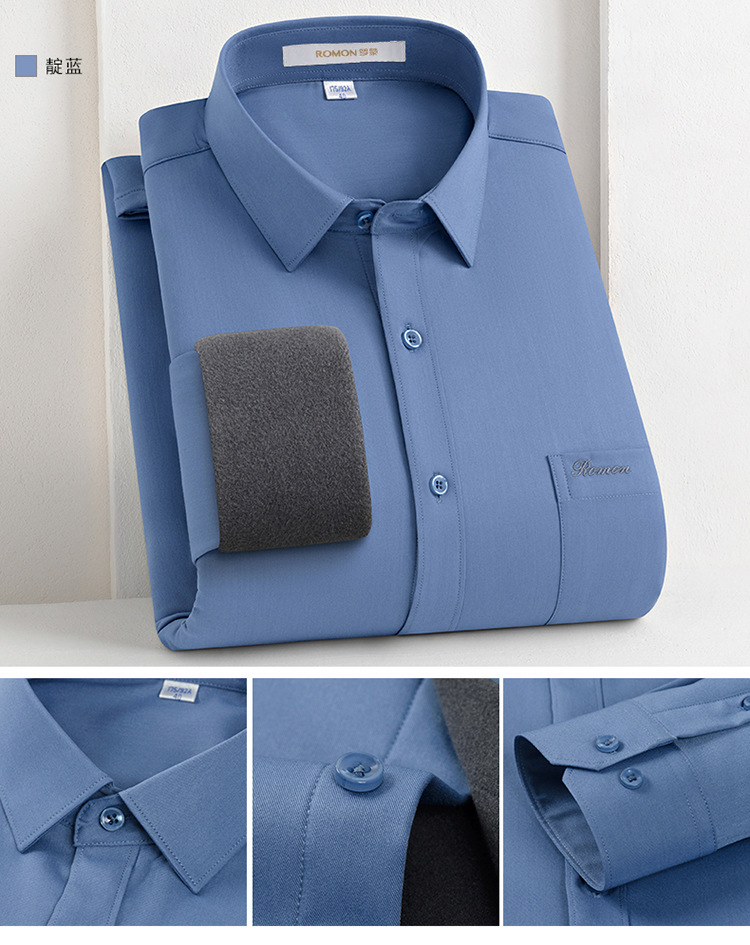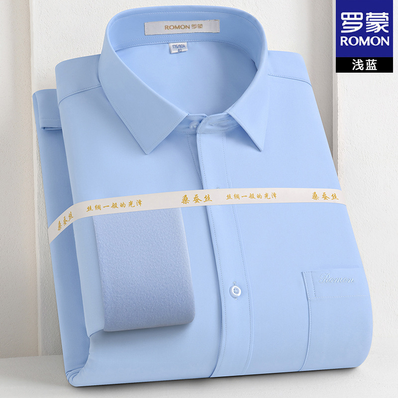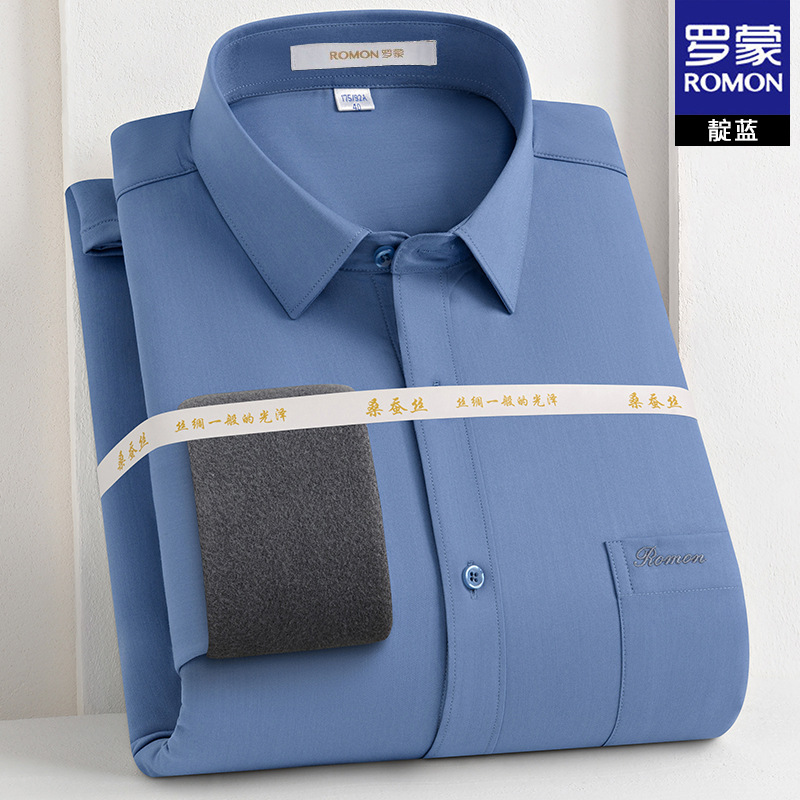 [멀버리 실크] 로몬 가을 겨울 솔리드 컬러 남성용 긴팔 셔츠 플러스 벨벳 두꺼운 셔츠 따뜻한 리얼 포켓