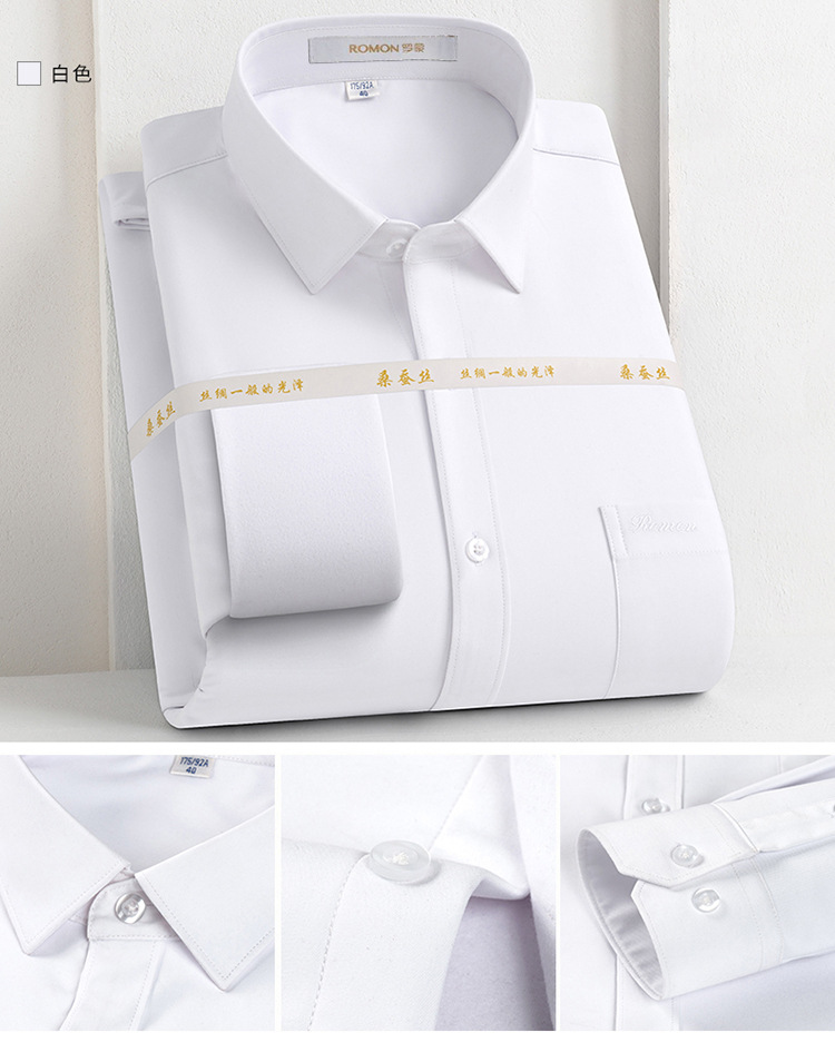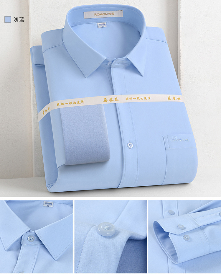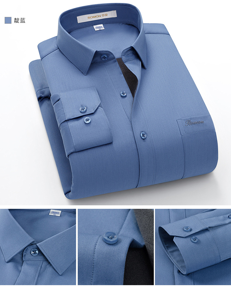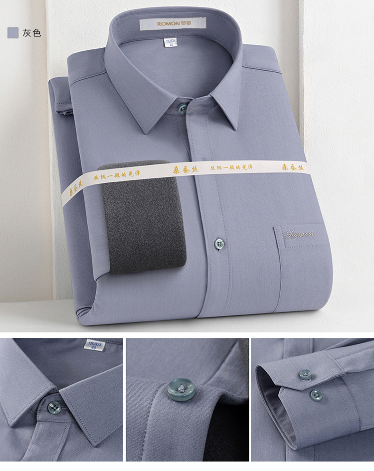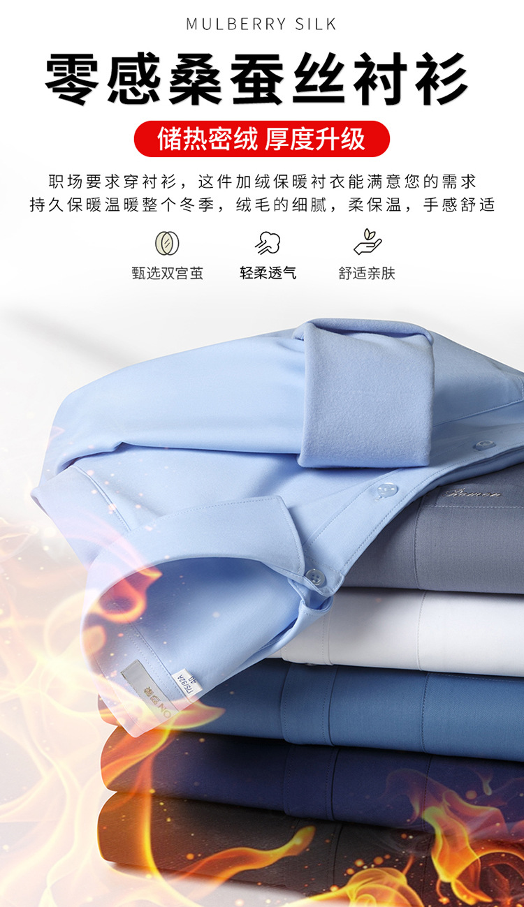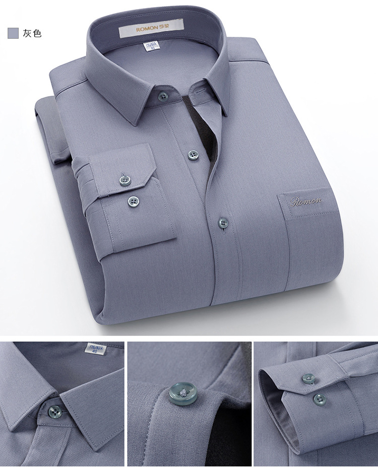 [멀버리 실크] 로몬 가을 겨울 솔리드 컬러 남성용 긴팔 셔츠 플러스 벨벳 두꺼운 셔츠 따뜻한 리얼 포켓