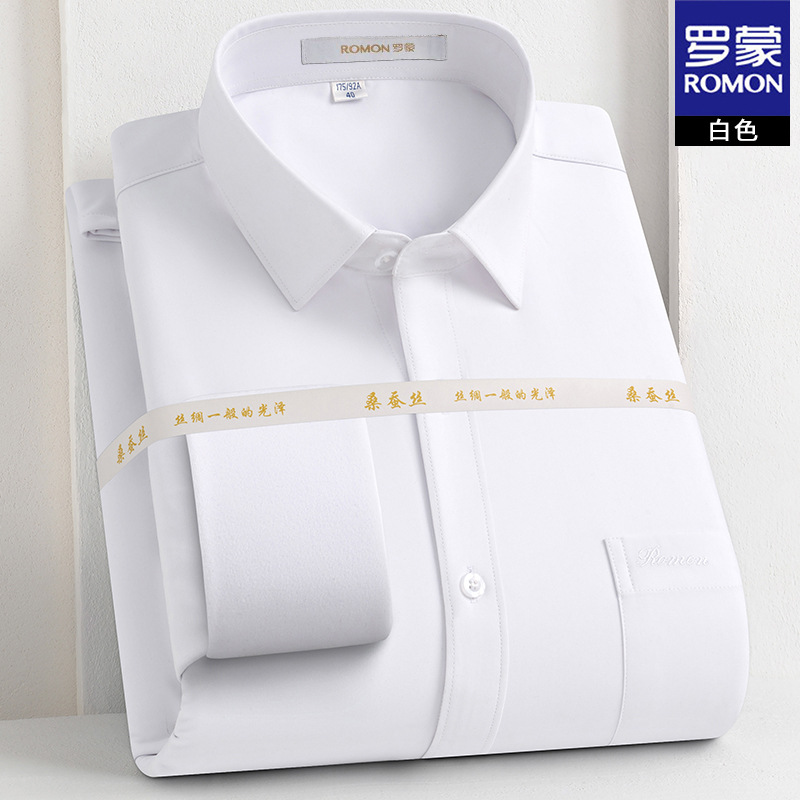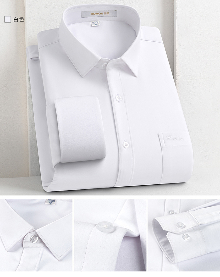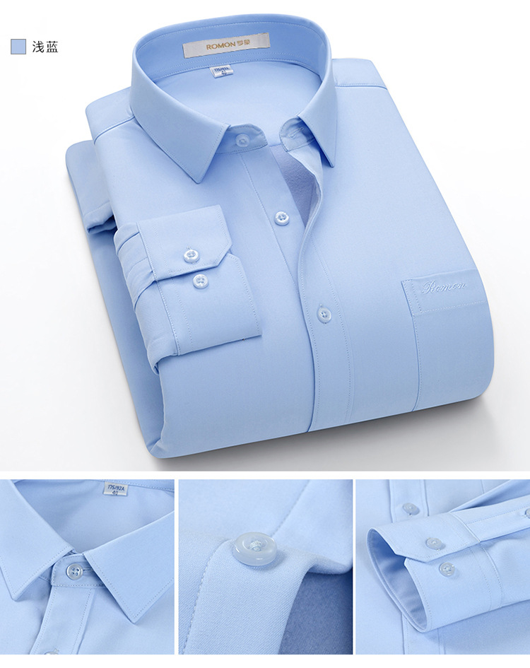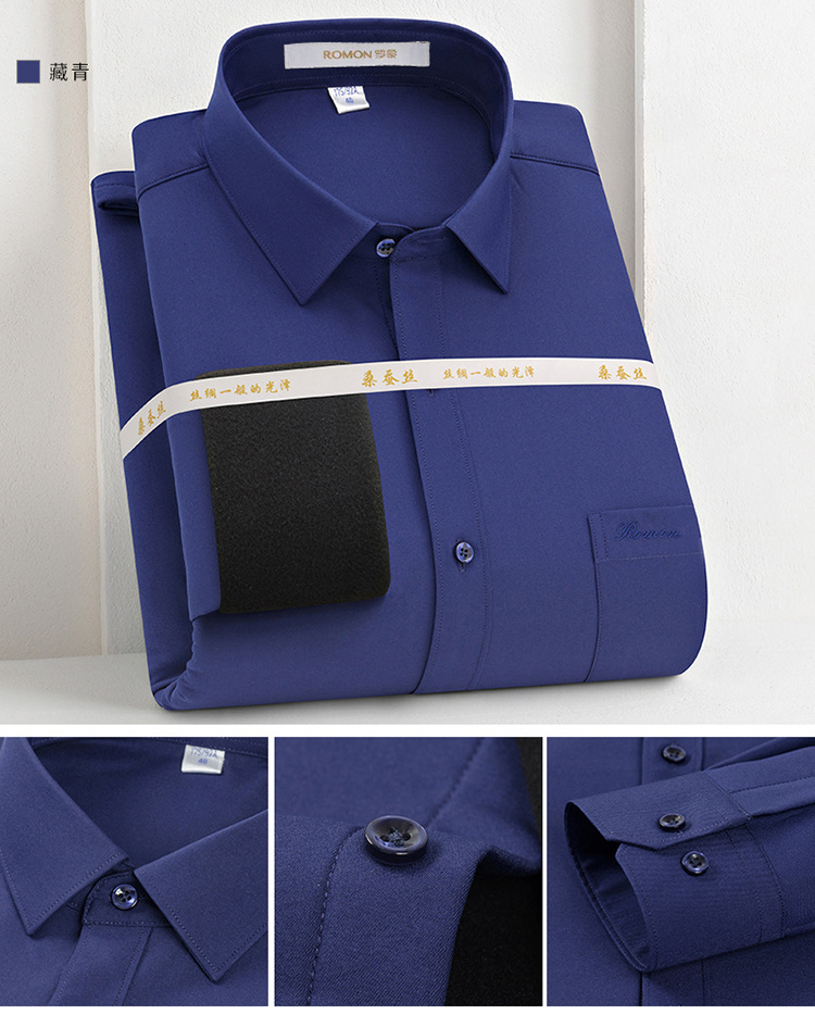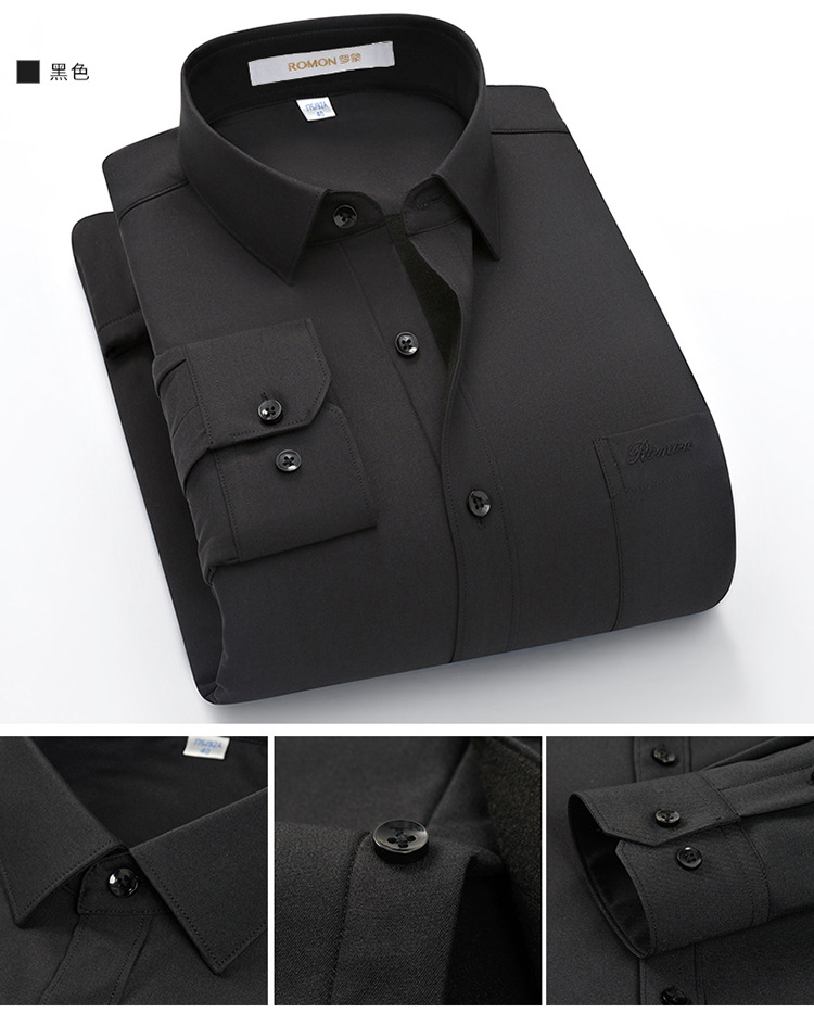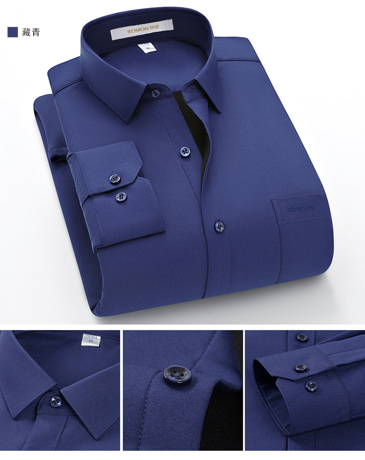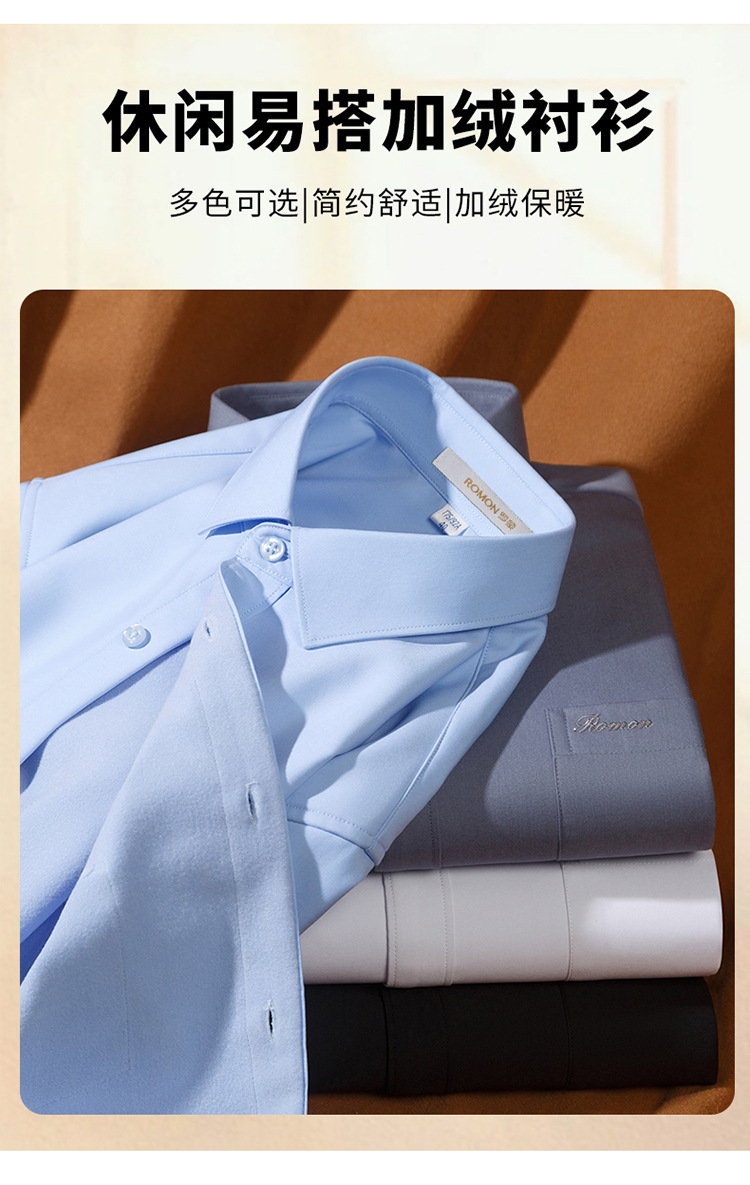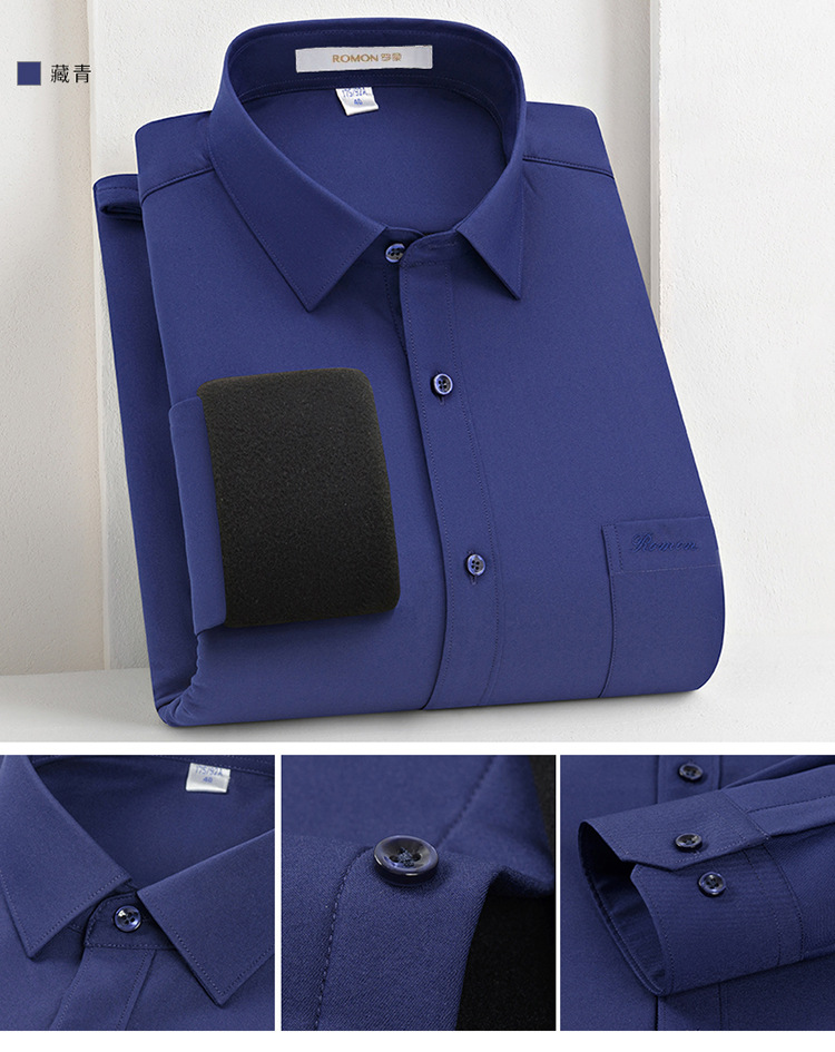 [멀버리 실크] 로몬 가을 겨울 솔리드 컬러 남성용 긴팔 셔츠 플러스 벨벳 두꺼운 셔츠 따뜻한 리얼 포켓스토어 가기