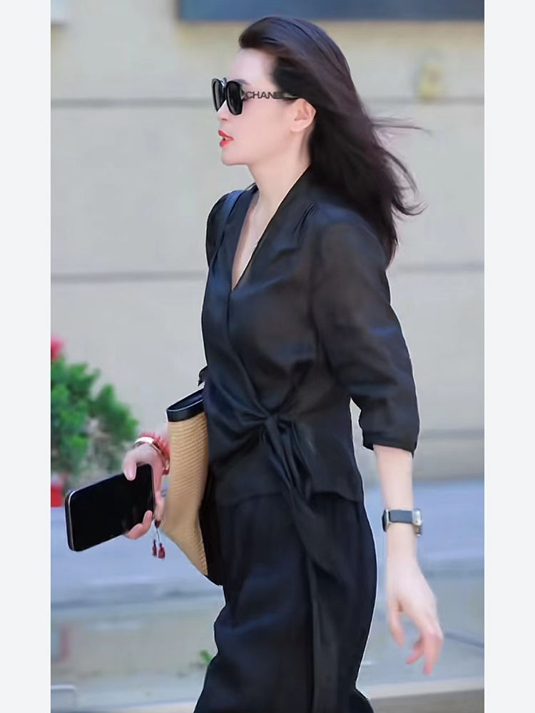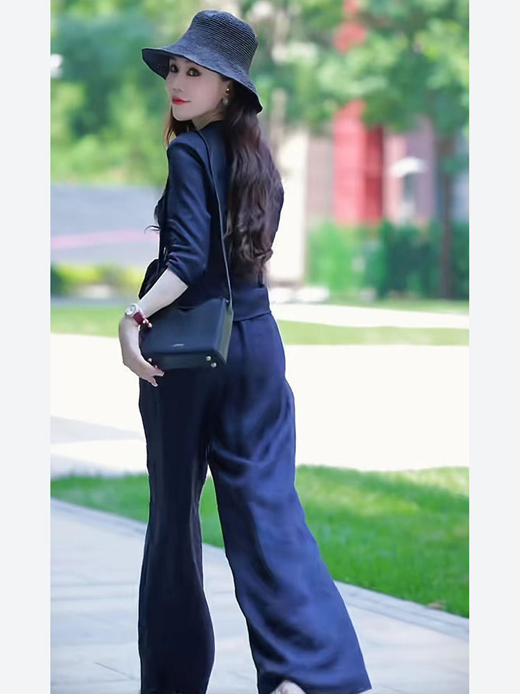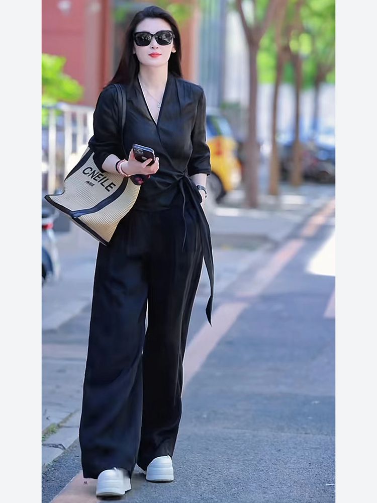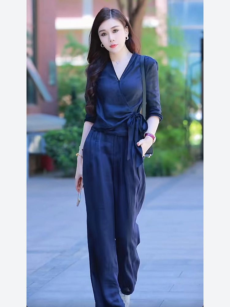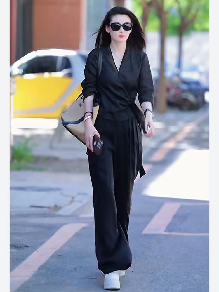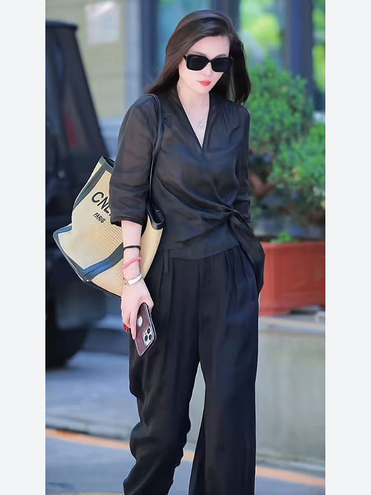 2025 여름 신작 여성 예술적이고 패셔너블한 연령 감소 디자인 브이넥 셔츠 다용도 하이웨이스트 와이드 팬츠 # 914